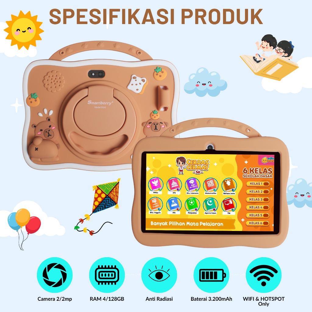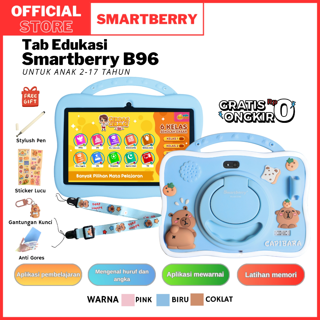 SMARTBERRY KIDS STUDY TAB TABLET B95 / B96 / ANDROID 14 / 2 KAMERA / BLUETOOTH / WIFI / PEMBELAJARAN ANAK / LAYAR IPS / COD / PROMO