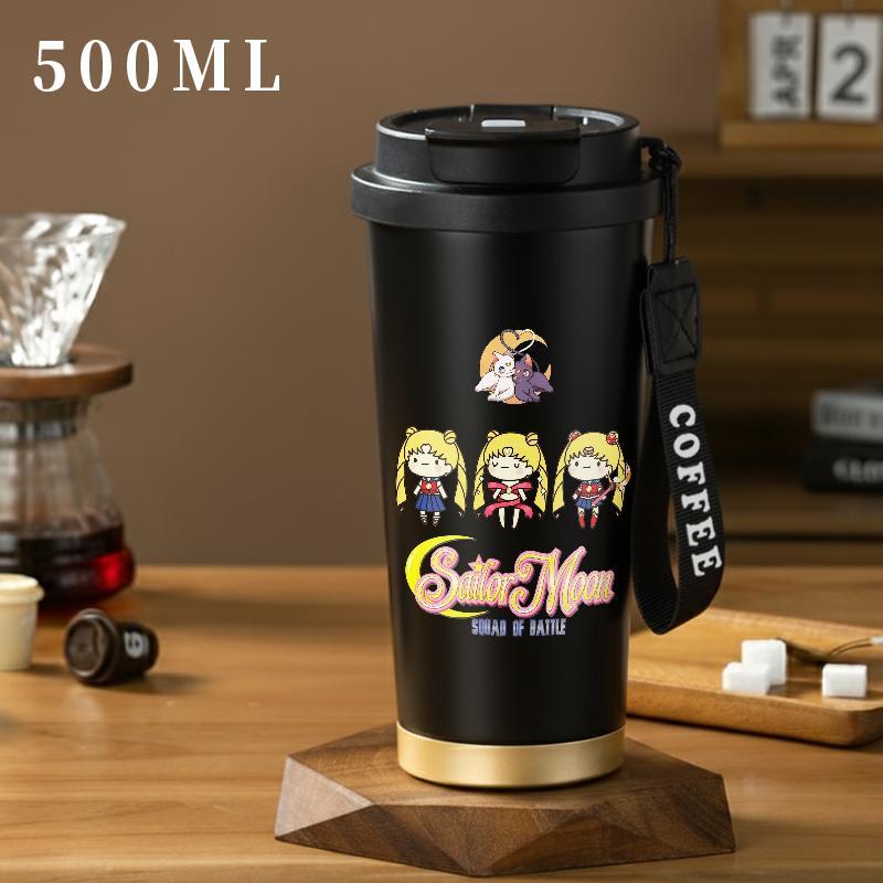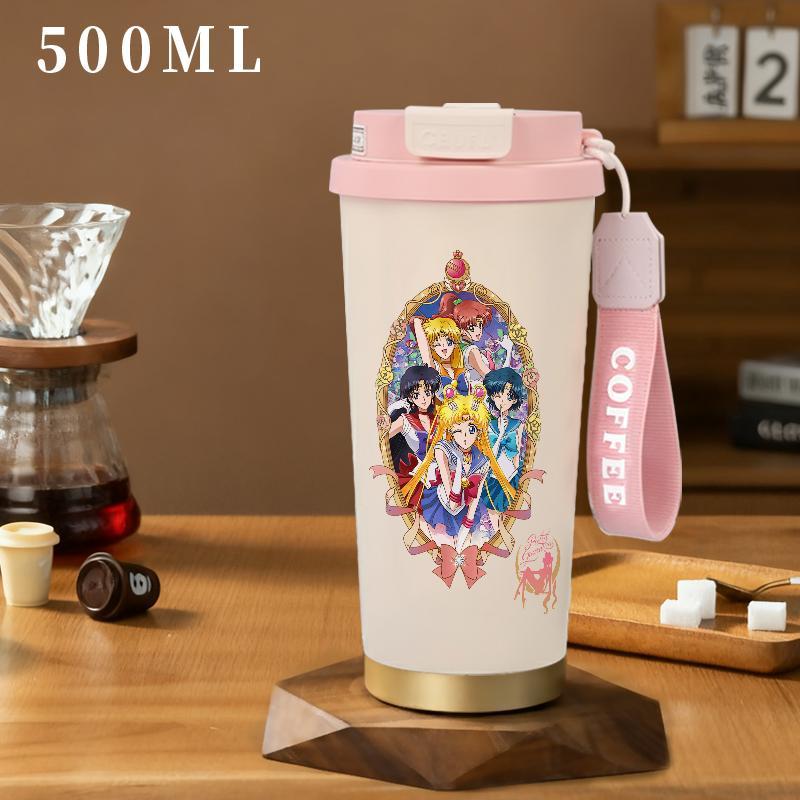 Tumbler Aesthetic Sailor Moon Chibi Usa Tsukino Usagi Aino Minako Mizuno Ami Tenoh Haruka Botol Minum Stainless Steel Tumblr CUP Case 500 ML Termos Tahan Dingin Panas Tambler Coffee Lucu Cute Kartun A