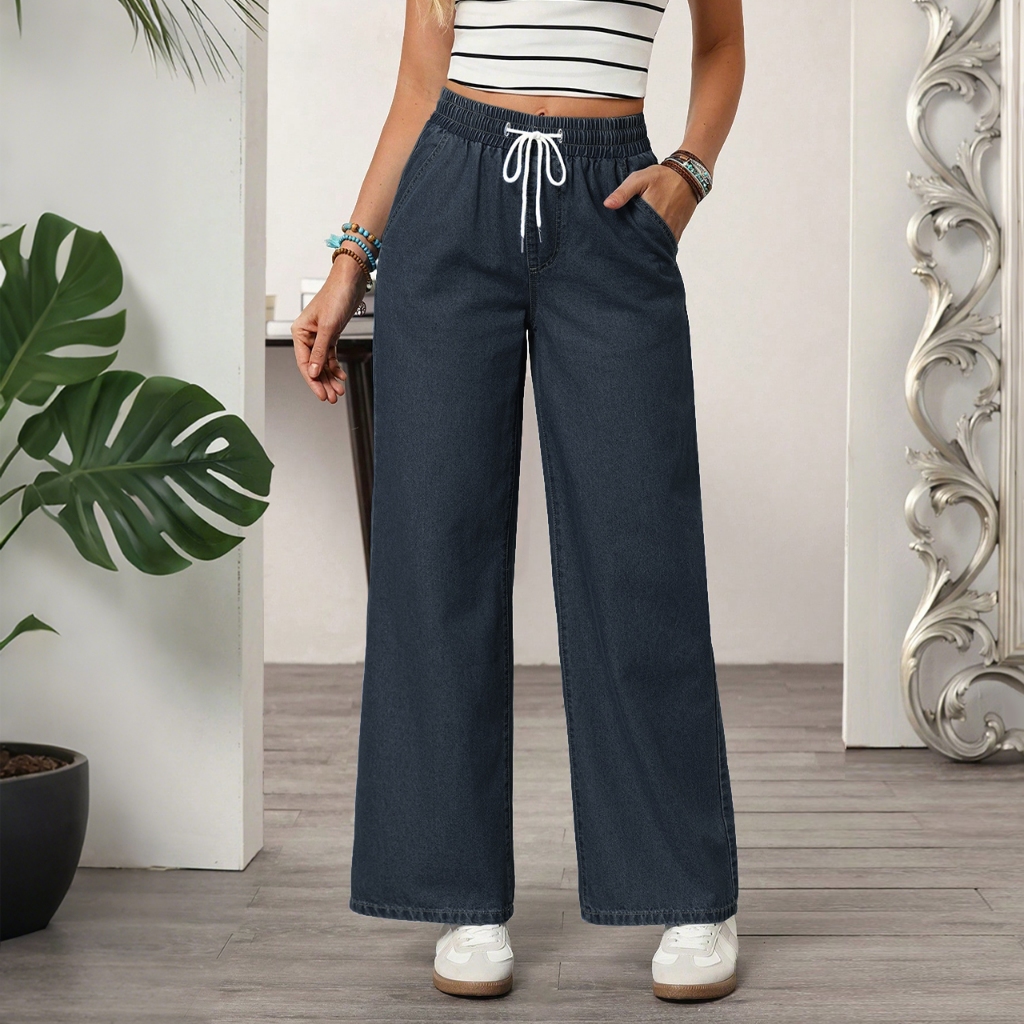 Celana Panjang Jeans Baggy Style Korean Elastic Waist Denim Wanita Palazzo Jeans