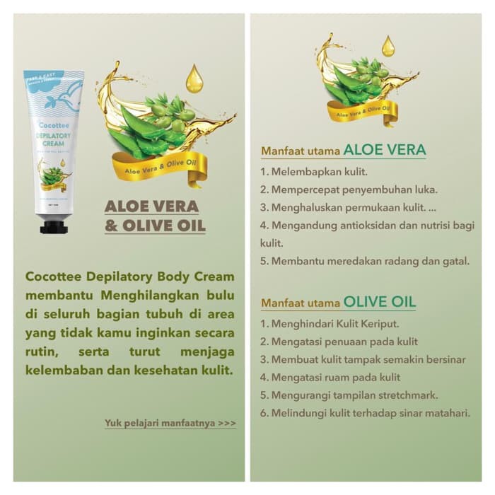 BPOM COCOTTEE DEPILATORY ALOE VERA FULL BODY (perontok bulu) ketiak sensitive sensitif