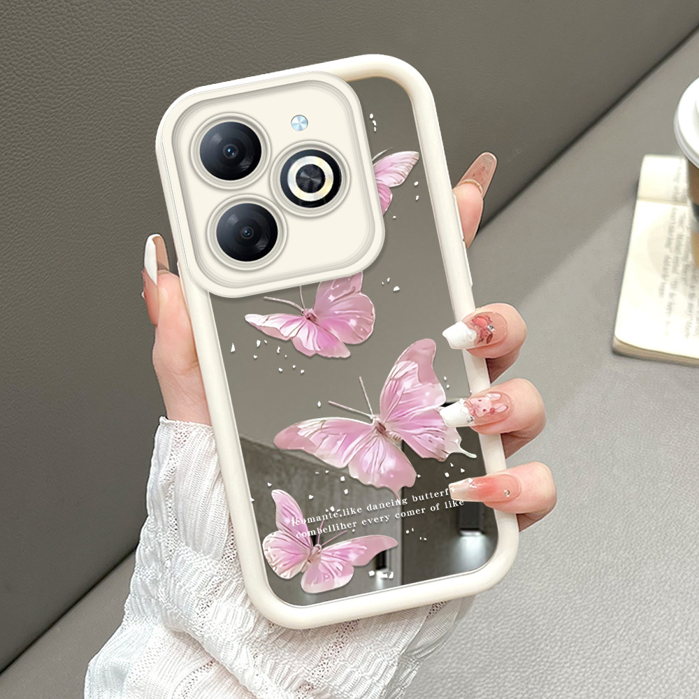 Casing Hp Untuk Infinix Smart 8 Hot 40i Tecno Spark 20 20C Pop Pro Go 2024 Kupu-kupu Merah Muda Mode Sofcase JZ TY ID42 1251 Cassing