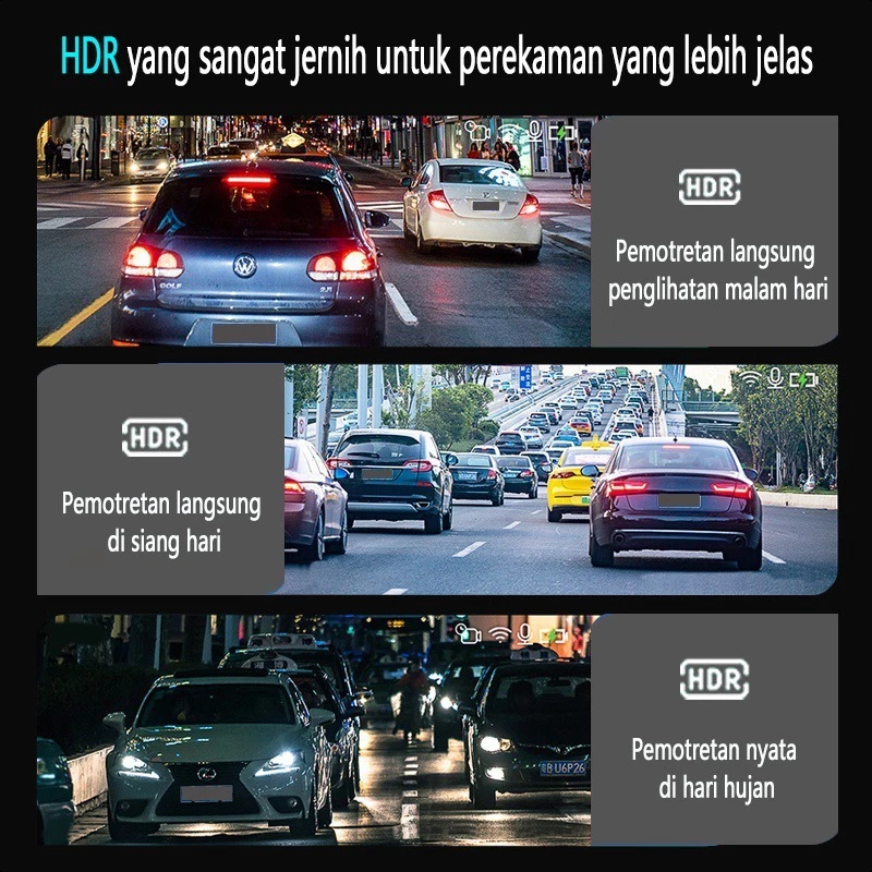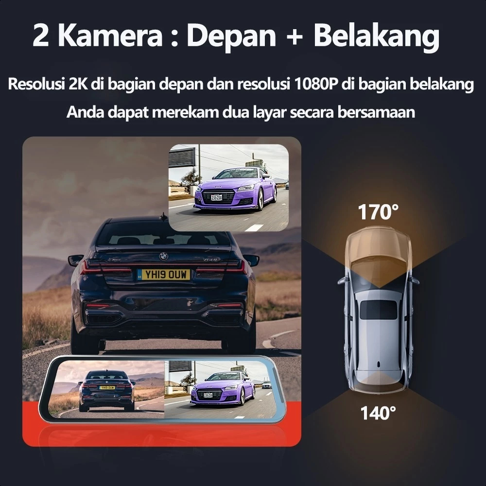 SCUDOS Dashcam Mobil WIFI GPS 4K 10 Inch Layar Sentuh IPS Night Vision Dual Lens Perekaman Loop 24 jam 2K 720P Acroder