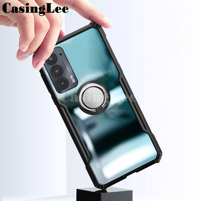 For Moto Edge 20 Edge 60 Fusion 60 Pro Case Hard Clear Transparent Shockproof Armor Car Adsorb Holder Ring Back Cover for Motorola Moto Edge 20 Phone Cases Cover