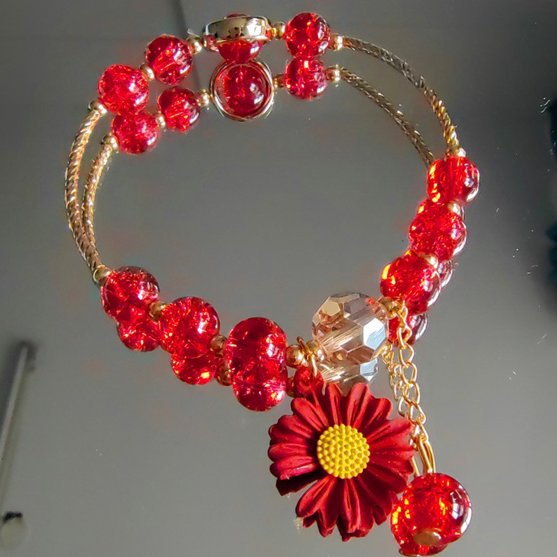Bunga matahari gadis gelang jantung manis Popcorn kristal kaca kristal kecil Daisy gelang