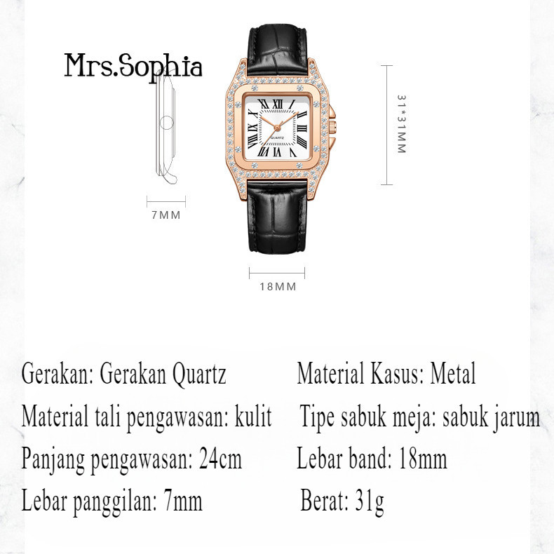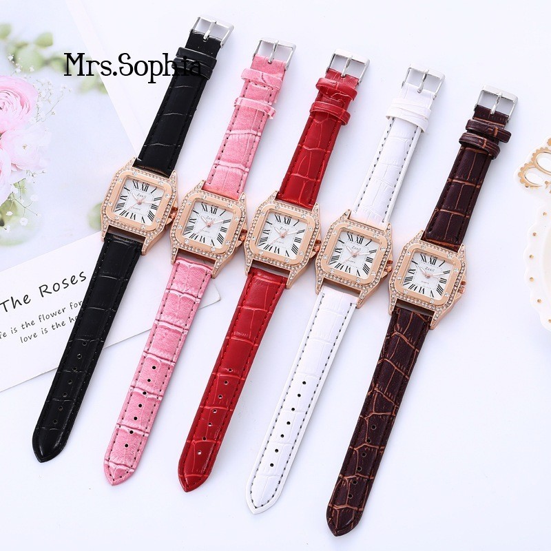 Mode Berlian Arloji Wanita Romawi Persegi Dari Pinggang Kulit Arloji Mekanis