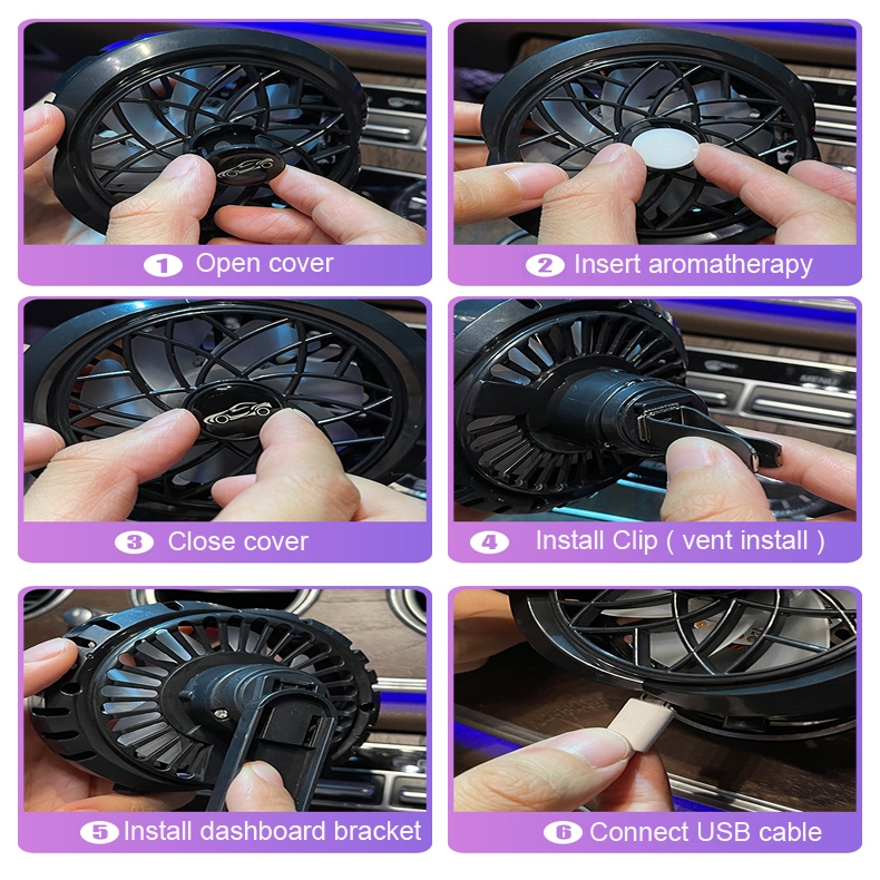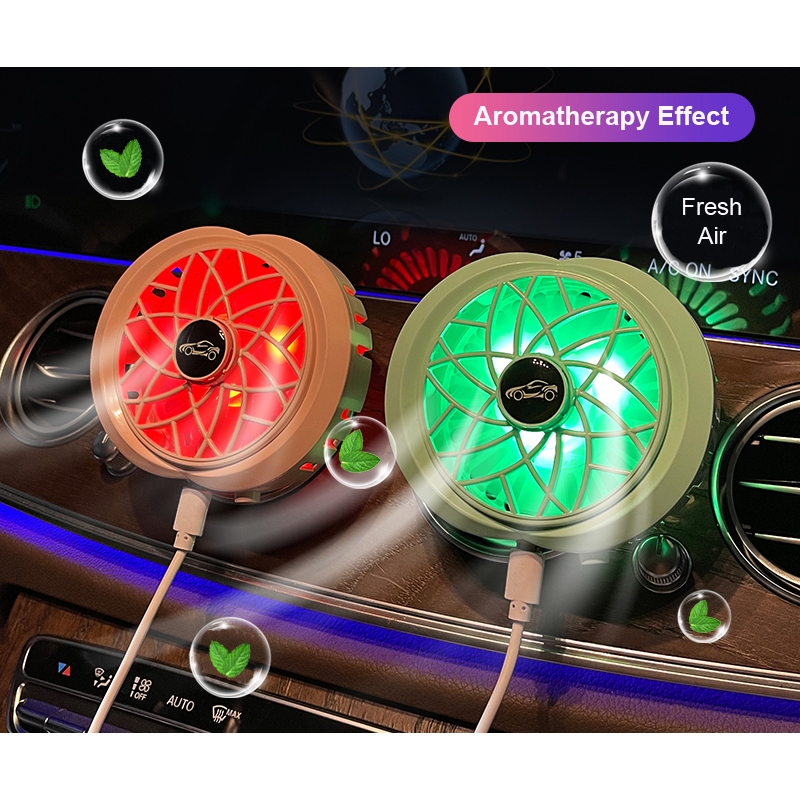 Car USB Fan Aromatherapy Diffuser RGB Light Kipas Angin Pengharum Mobil