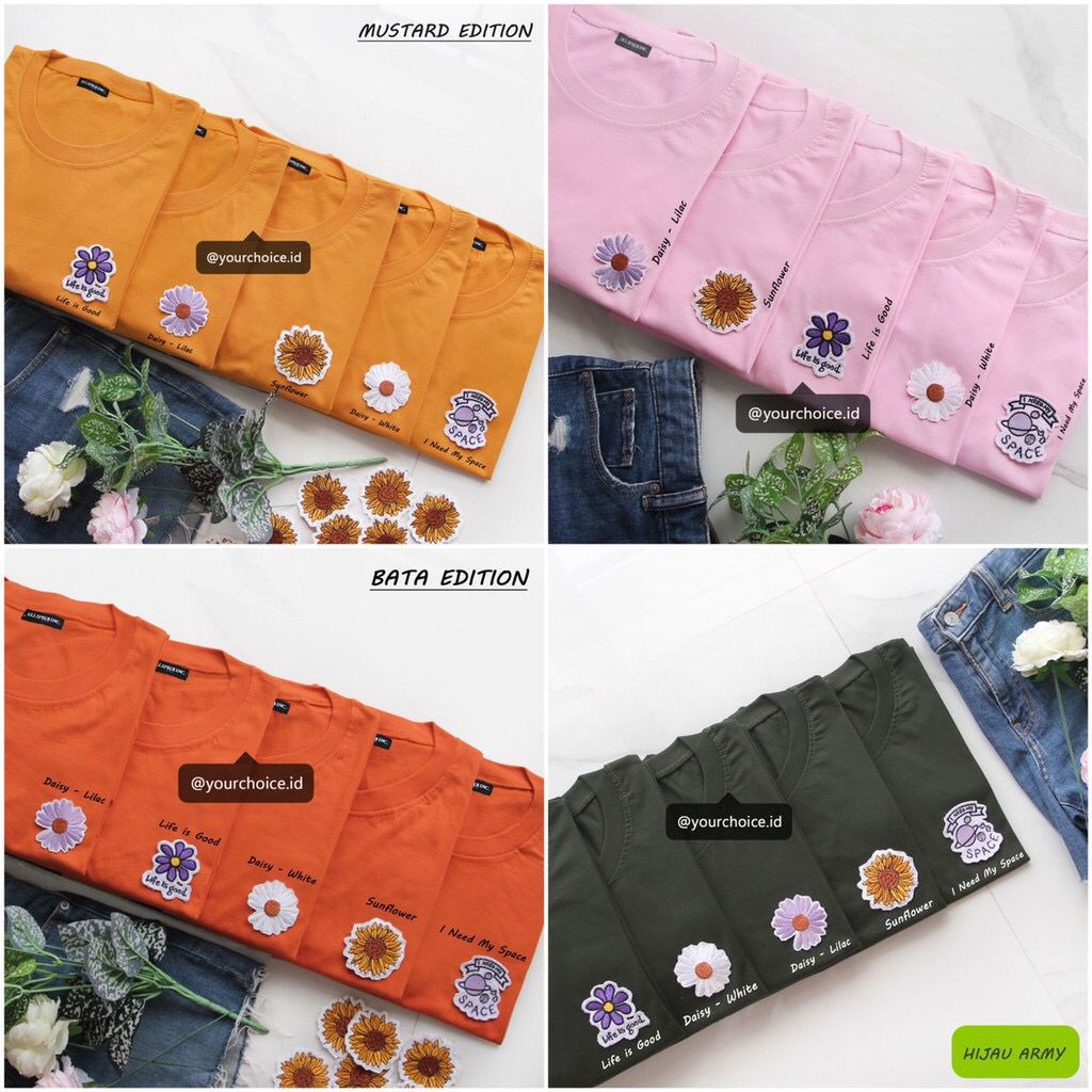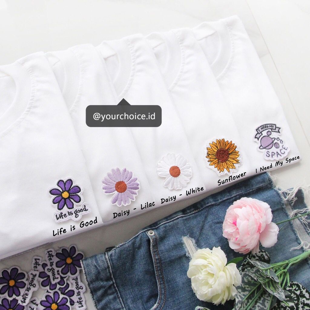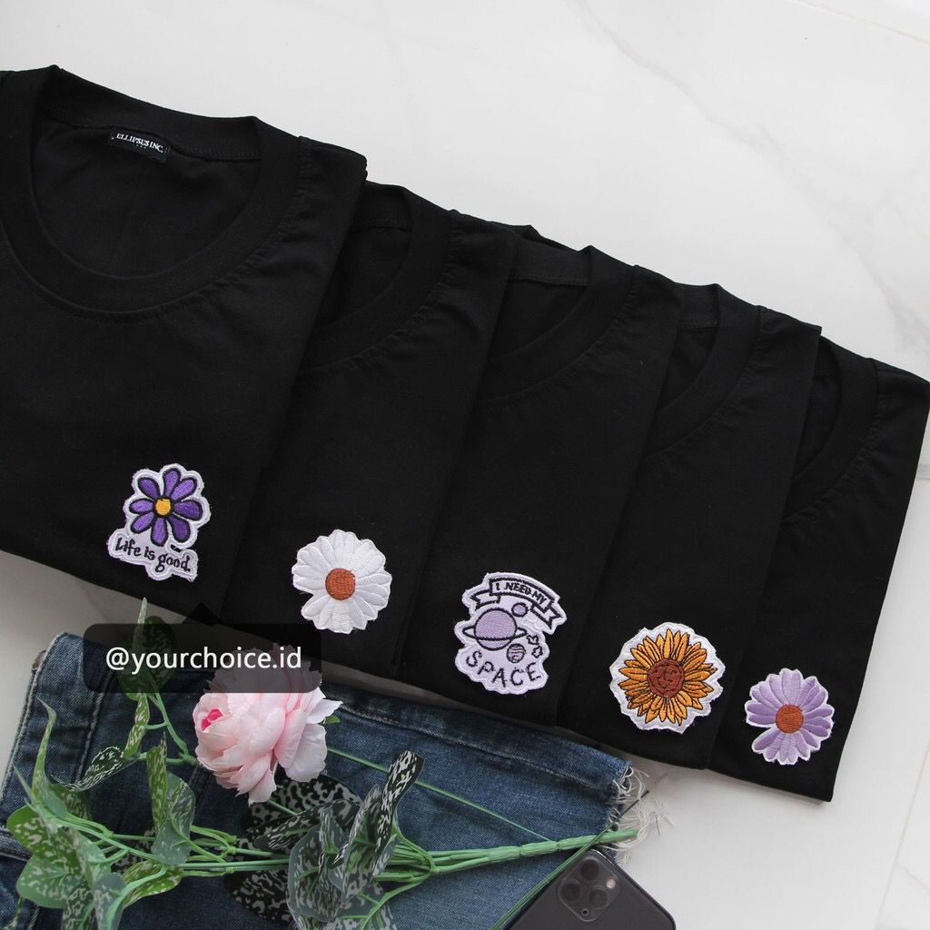 YOURCHOICE.ID Kaos / Dress Oversize Wanita & Pria Patch Daisy/Sunflower/Life Is Good/I Need My Space
