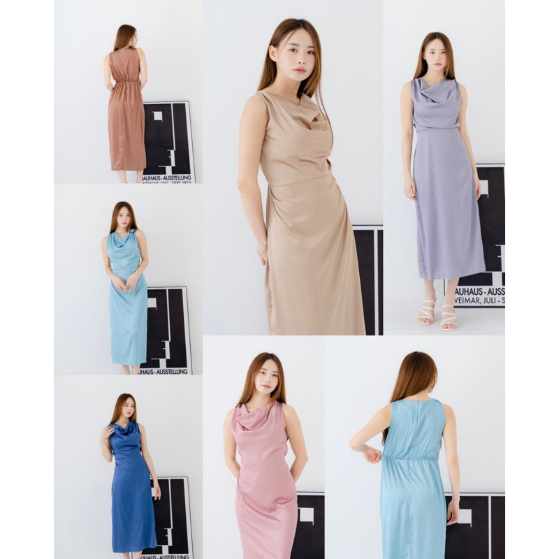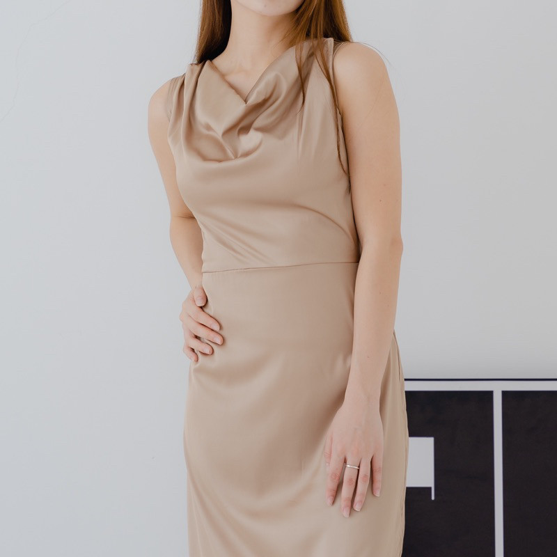 Natal Dress Satin Charlotte Silk Satin Dress - drapery neck satin dress wanita DN018 By Diamore Grosir.id