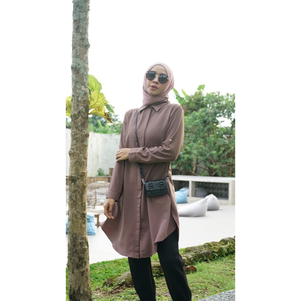 Lavina VT1519 | Safa Atasan Tunik Polos Muslim Kemeja Tunik Kancing Basic Wanita Busui