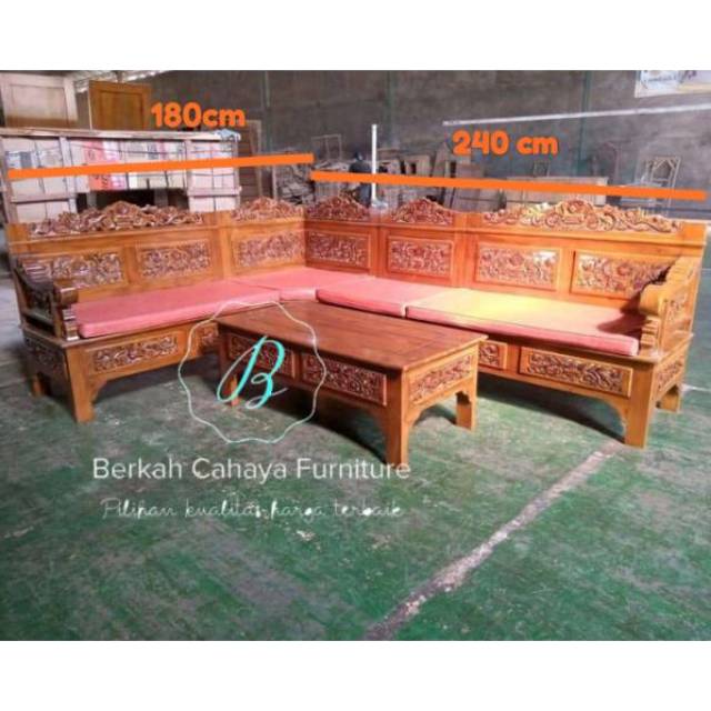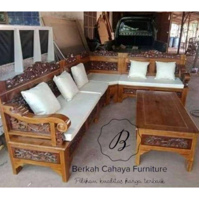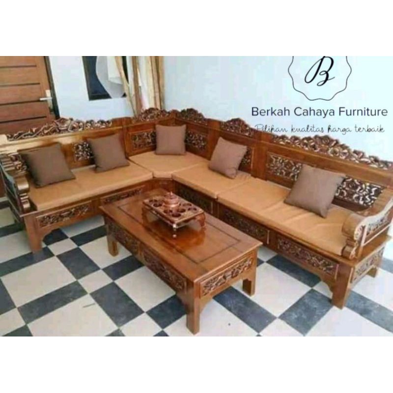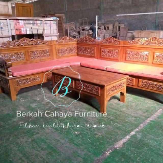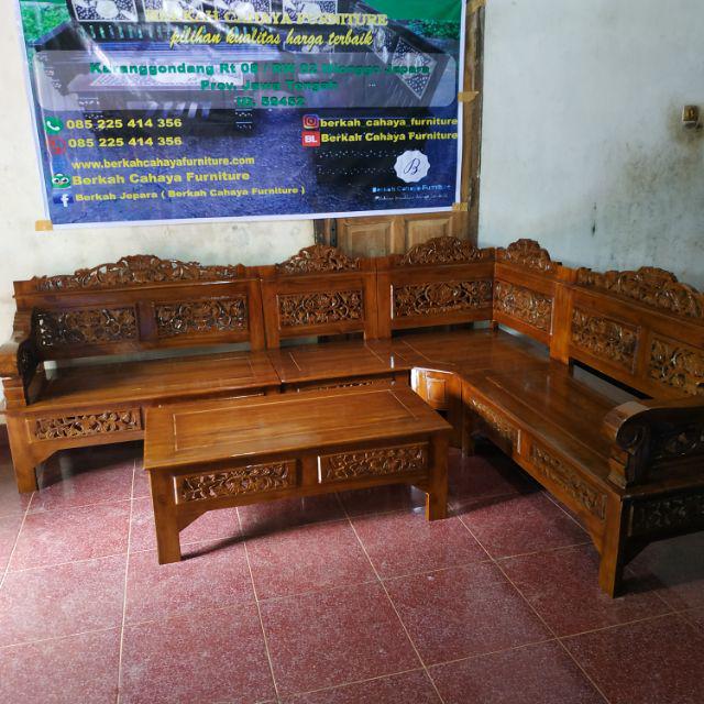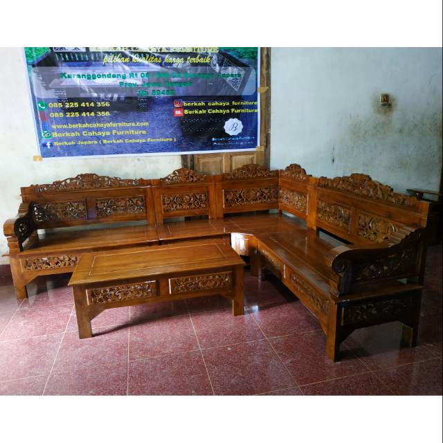 Kursi tamu sudut bagong kayu jati ukir jepara