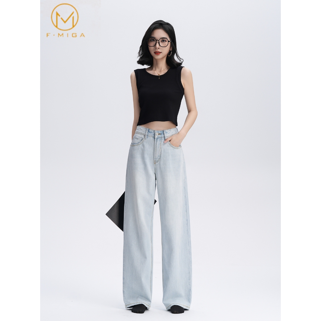 F·MIGA C02 Celana Panjang Highwaist Wanita Jeans Premium Quality Jeans Wanita Polos Jeans - biru muda