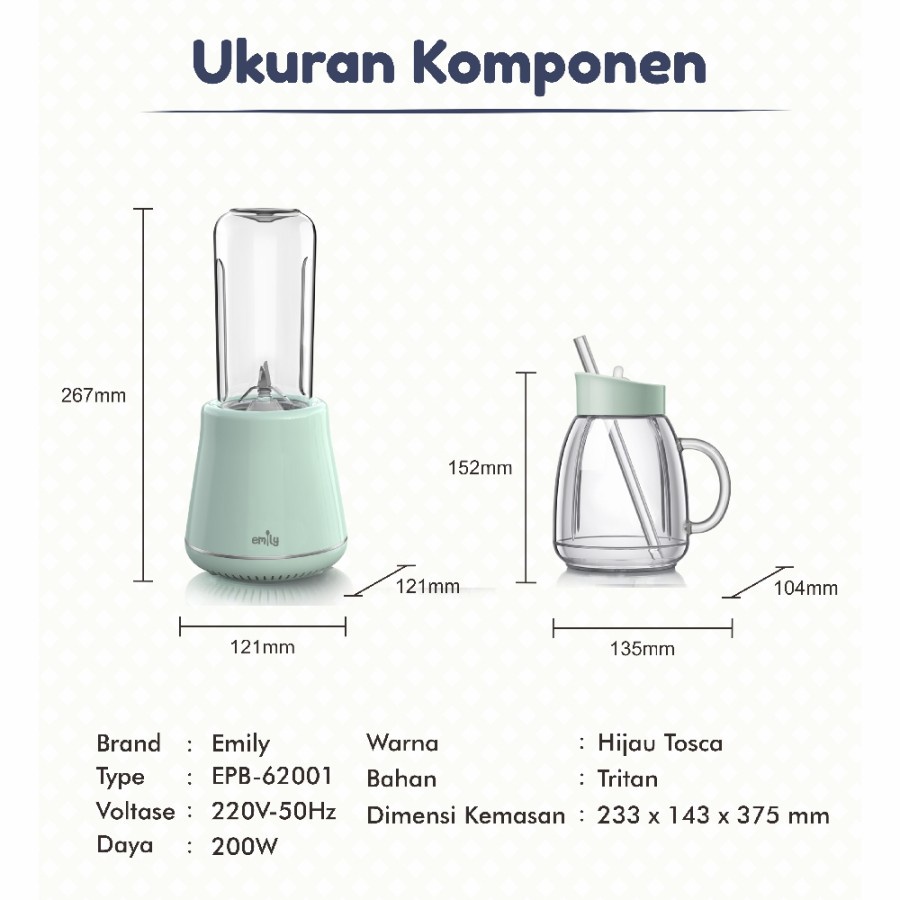 EMILY PORTABLE BLENDER WITH BOTTLE & MUG - BLENDER DENGAN BOTOL & MUG