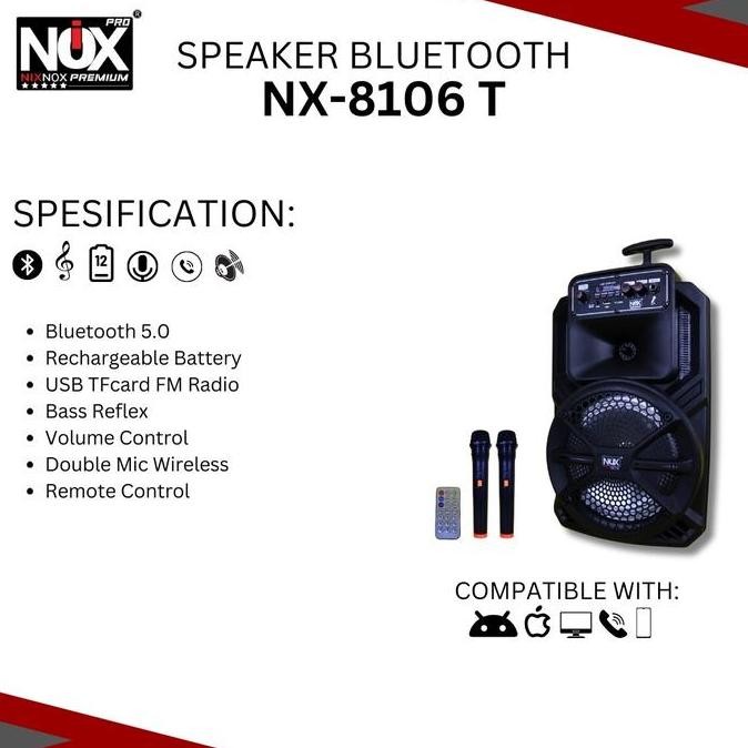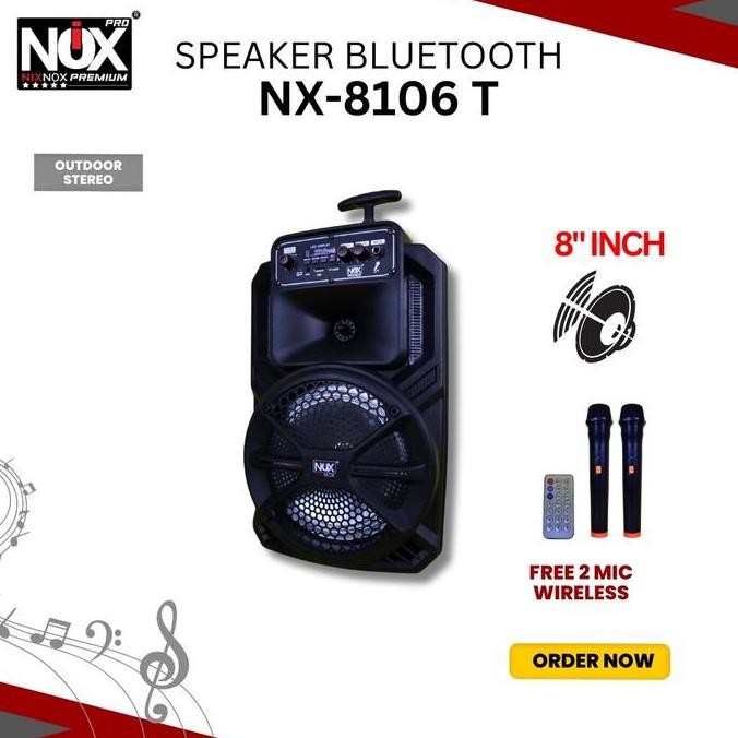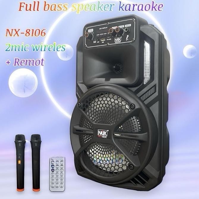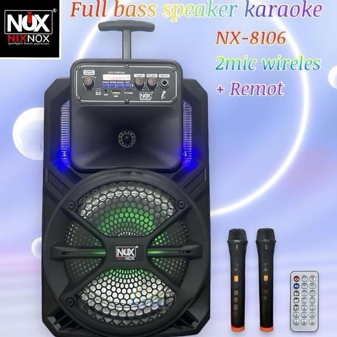 Promo Speaker Bluetooth Karaoke Size 8 Inch Nix Nox Nx-8106 Free 2 Mic Wireless Speaker Fullbass