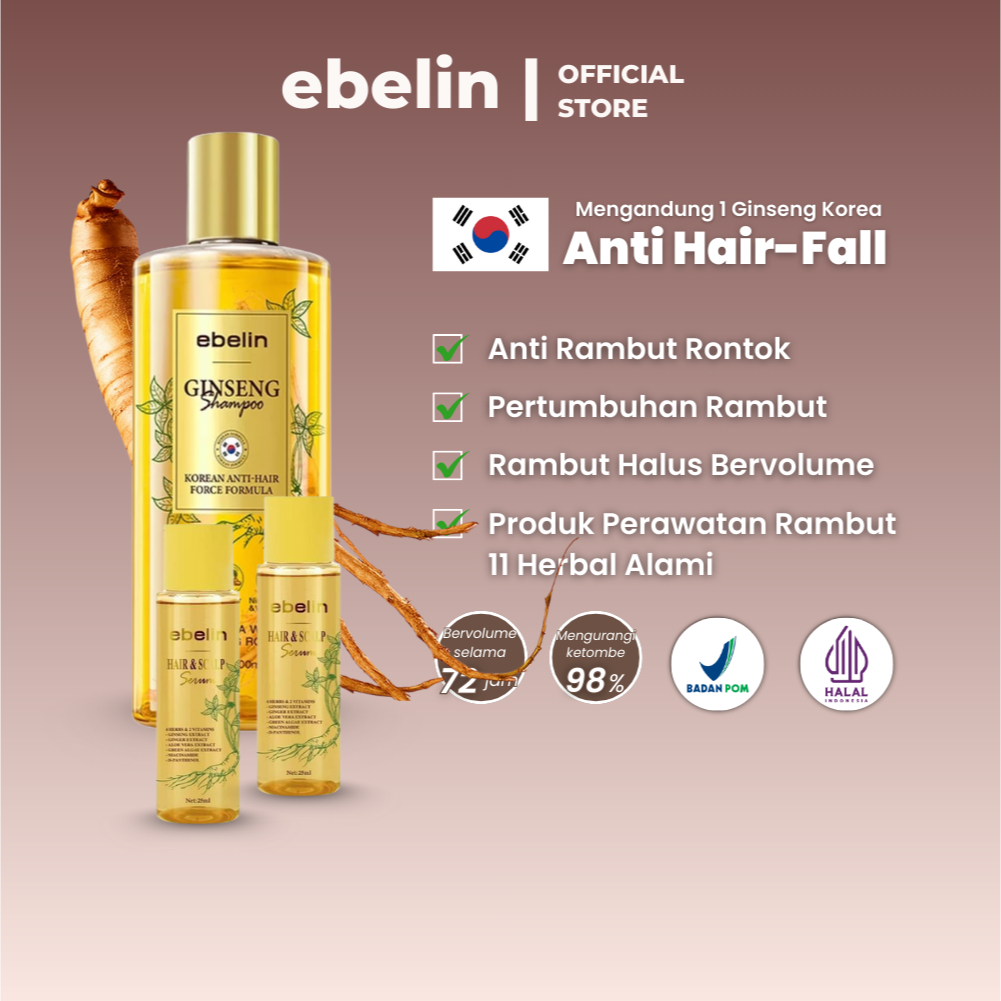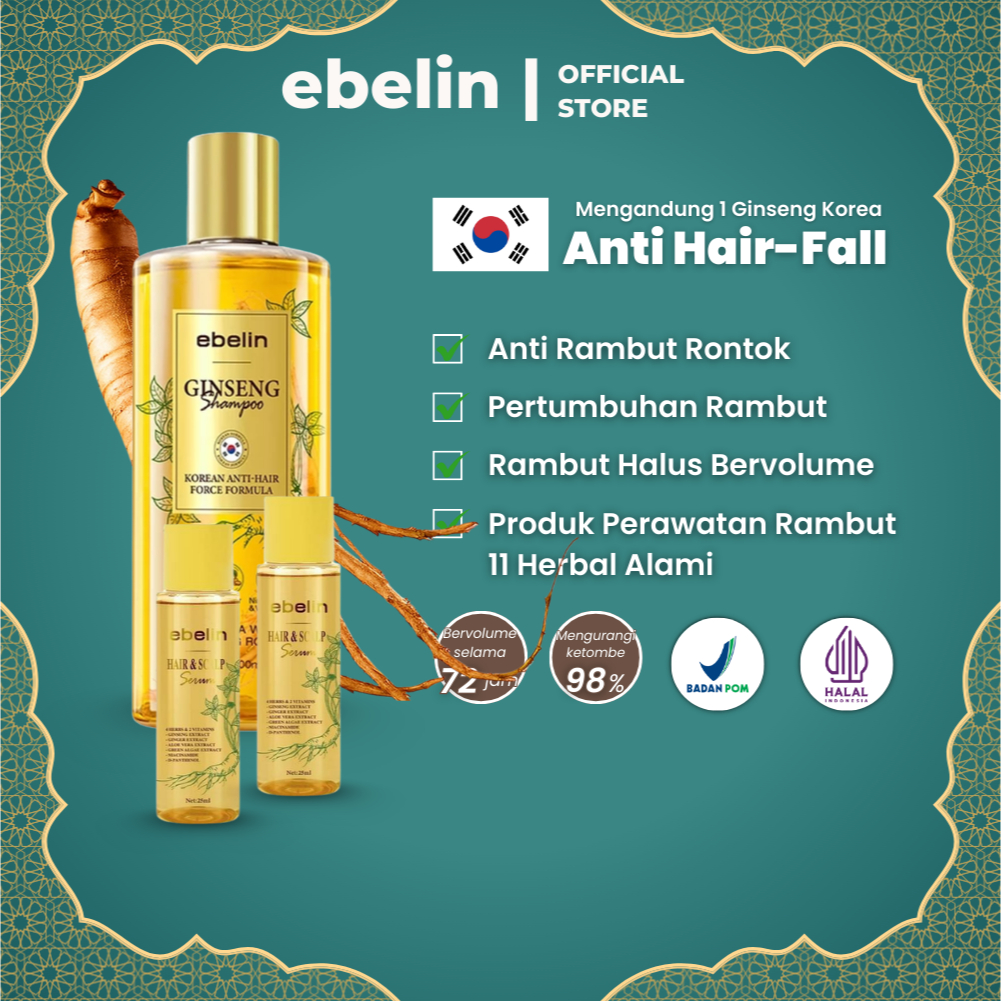 Paket Hemat Shampoo Anti Rontok dan Ketombe | Kurangi Rambut Rontok & Rambut Lepek | 1 Shampo Ginseng 300ml + 2 Hair Serum