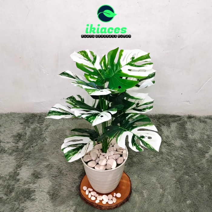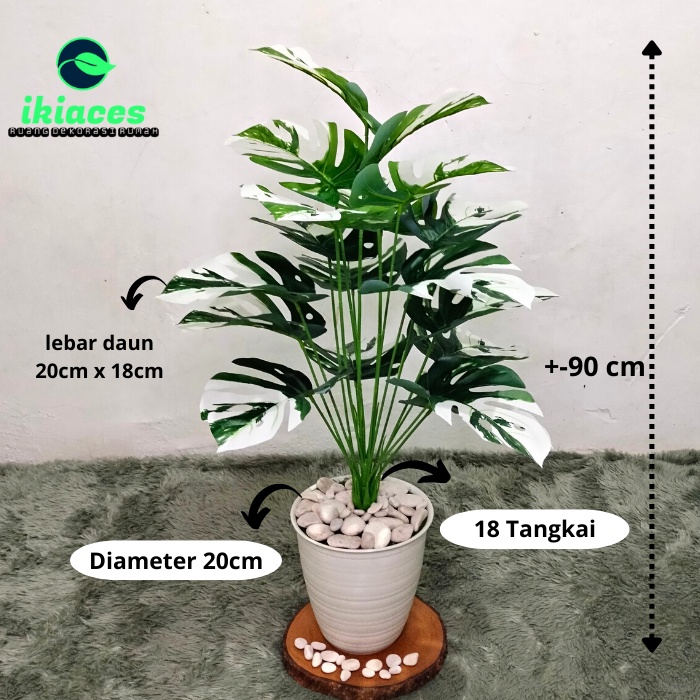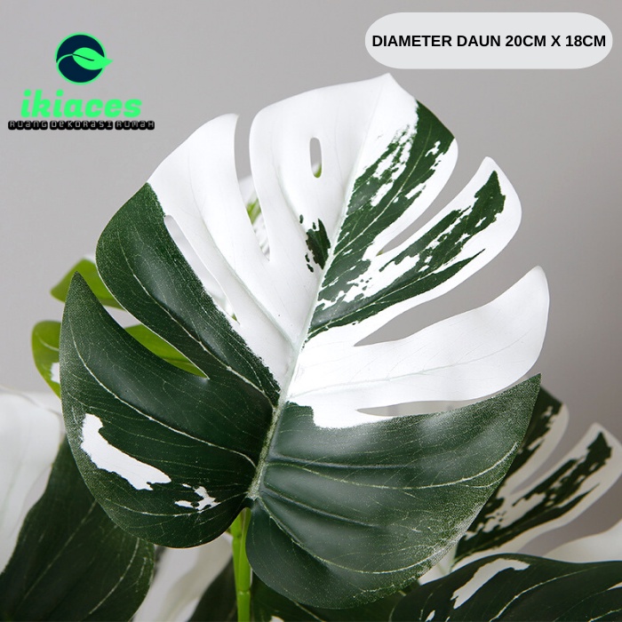 DAUN MONSTERA JUMBO PLASTIK POT DAUN MONSTERA CORAK PUTIH DAUN ARTIFISIAL DAUN DEKORASI RUMAH