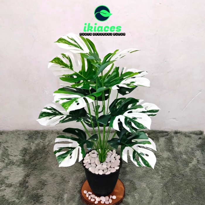 POHON MONSTERA JUMBO ARTIFICIAL DAUN MONSTERA PLASTIK POT MONSTERA JUMBO CORAK PUTIH DEKORASI TANAMAN PLASTIK