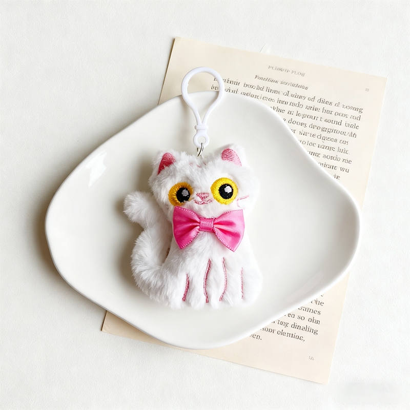 Boneka Gantungan Kucing Kecil Berbulu Kartun dengan Pita Aksesoris Tas Rasa Gadis Muda