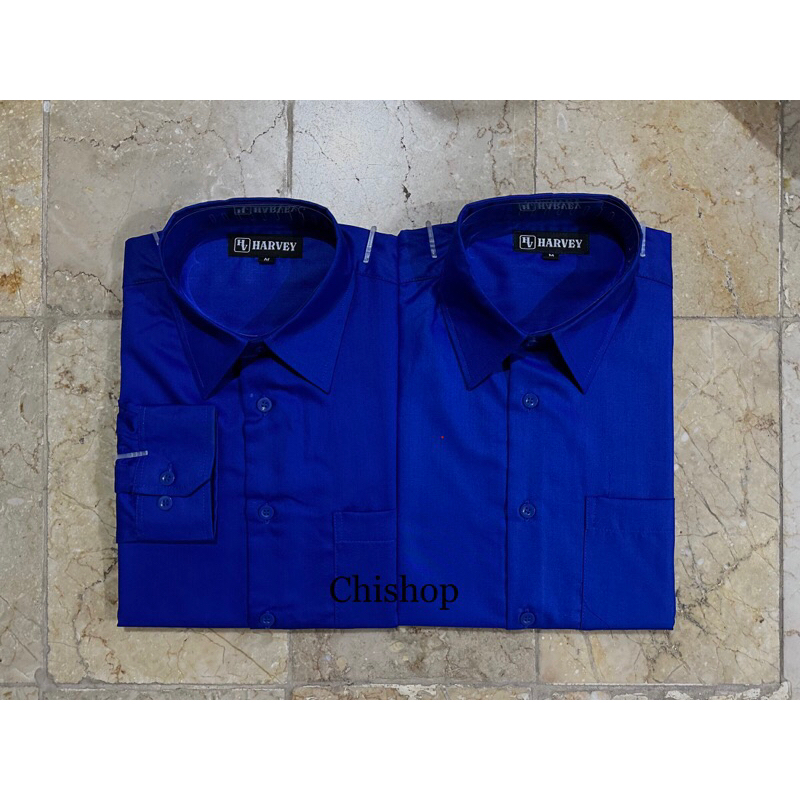 KEMEJA PRIA HARVEY - KEMEJA POLOS LENGAN PANJANG / PENDEK PRIA WARNA BIRU BCA