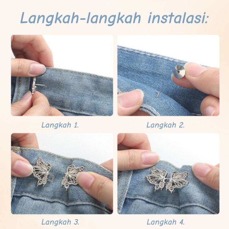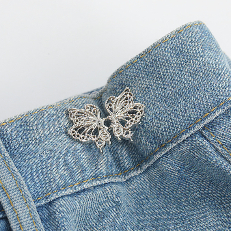 Gesper Kupu-Kupu untuk Jeans, Kancing Logam Dapat Dilepas, Penyesuai Pinggang Tanpa Jahit & Paku