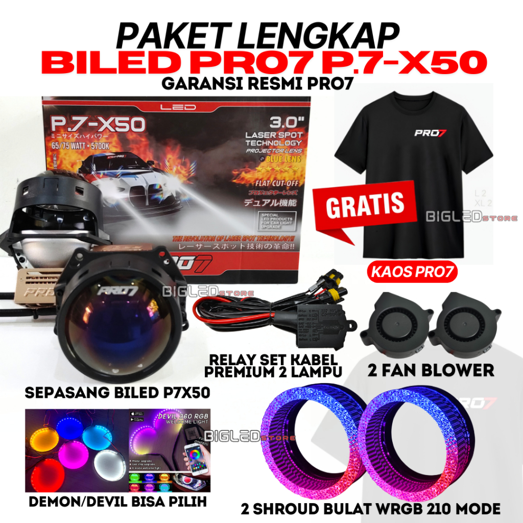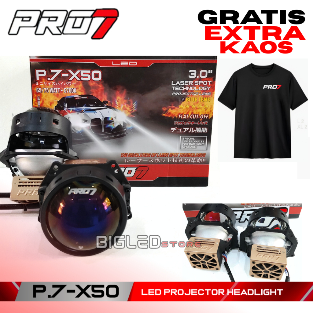 [GRATIS EXTRA KAOS] PAKET HEMAT Lampu Biled Projector Headlamp Pro7 PRO 7 P7X50 P.7-X50 P7-X50 P.7X50 P7 X50 65 75W 3 inch 5700K LENGKAP