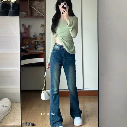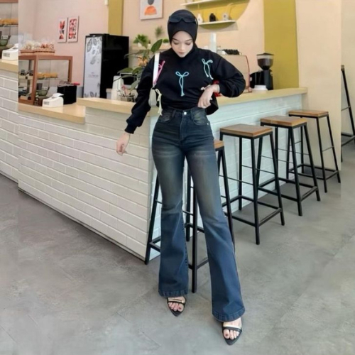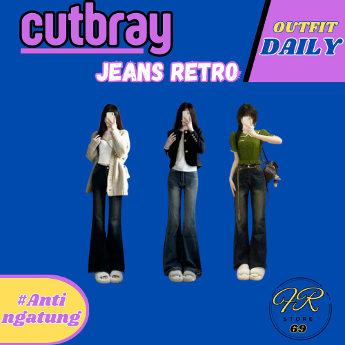 Highwaist Cutbray Jeans Retro Wanita-Celana Jeans Cutbray Wanita Model Retro Korea Terbaru