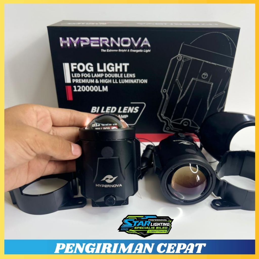 FOGLAMP HYPERNOVA A2+ 2 INCH 3 WARNA DOUBLE EMITER 90 WATH FURPLE LENS DE RGB APP