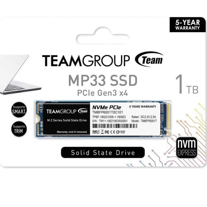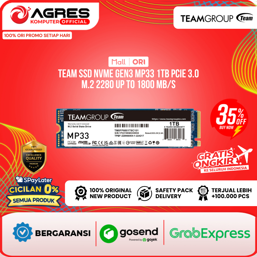 TEAM SSD NVME GEN3 MP33 256GB 512GB 1TB 2TB PCIE 3.0 M.2 2280 5Y - UP TO 1800 MB/S