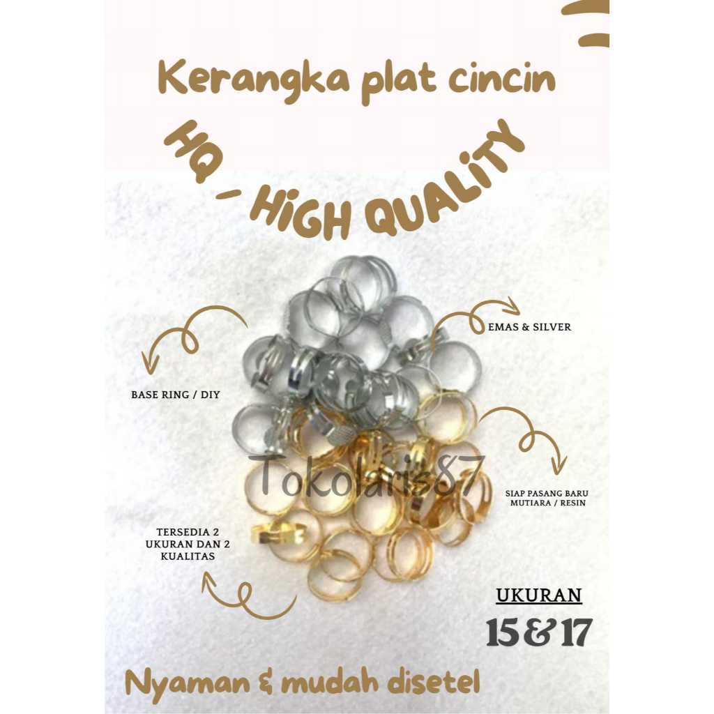(1 BUNGKUS / 1000 PCS) Bahan Cincin HQ No 15 & 17 | Ring Base Cincin Kosong Perak Emas | Bahan Aksesoris DIY Polos HOMEMADE