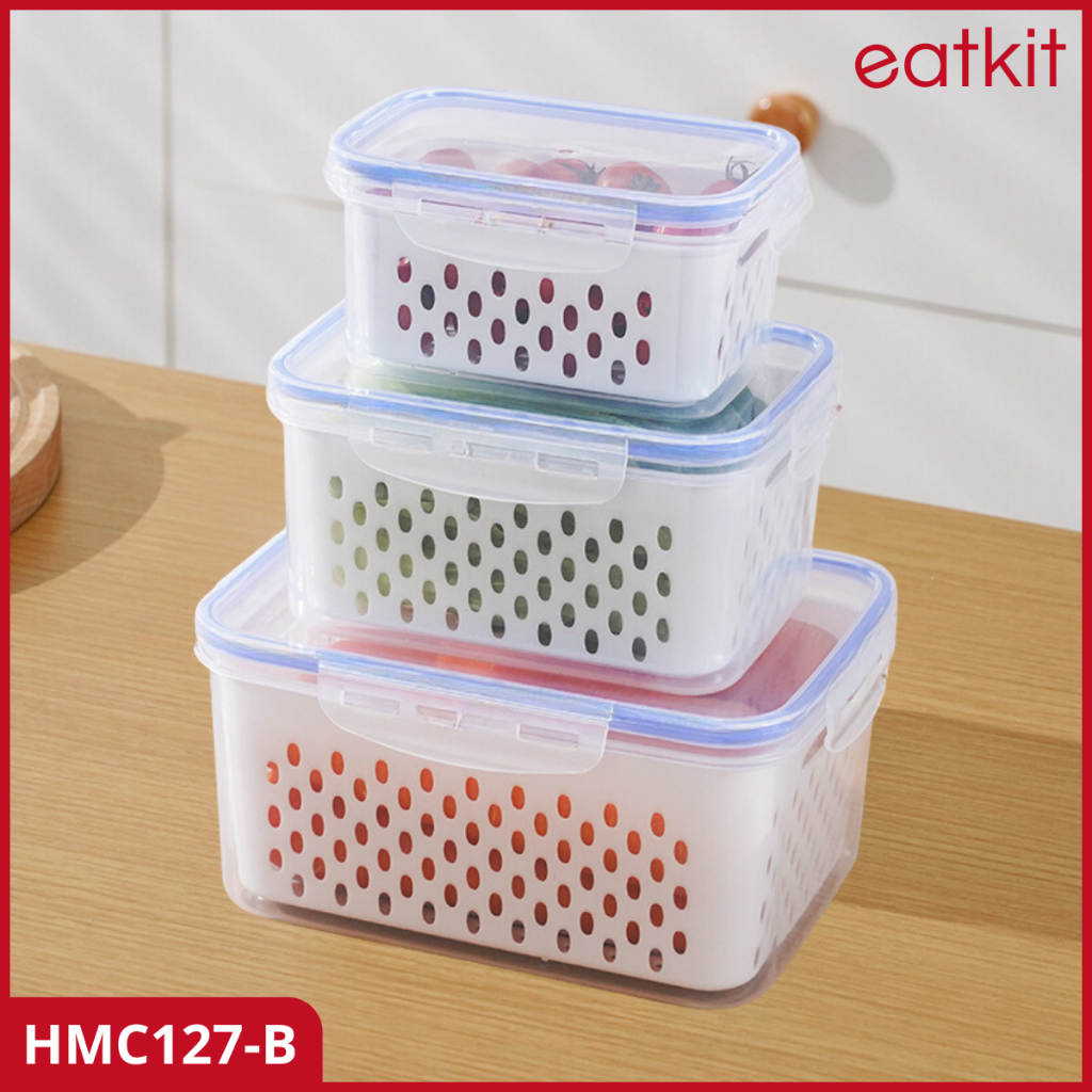Eatkit Keranjang Saringan 3in1 Sayur Buah Serbaguna Kotak Penyimpanan Multifungsi Wadah Kulkas
