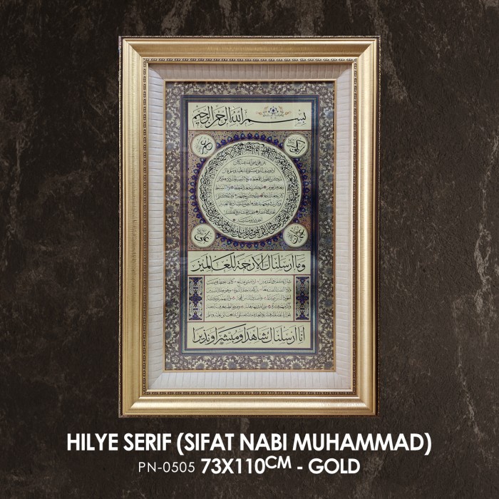:::::::] Kaligrafi Hilyah Syarifah Sifat Mulia Nabi Muhammad 73x110cm Gold