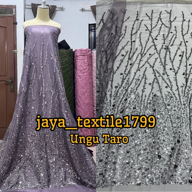 Kain tulle Payet Premium / Tile Full Payet motif Akar / Tile Payet termurah