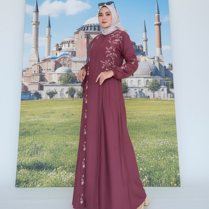 Gamis Amanda Faricha (Free Pouch & Goodie Bag) Bordir Rayon Twill Premium Warna Bordir Random