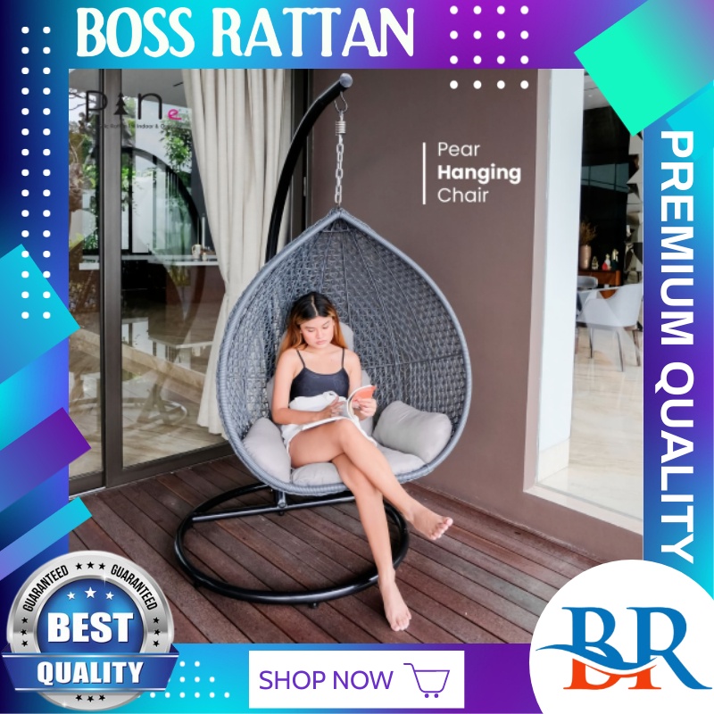 Kursi Ayunan Anyaman Rotan Sintetis Gantung Pear Anak anak Dewasa Malas Santai Nyaman Empuk Halaman Teras Taman Balkon Rumah Murah