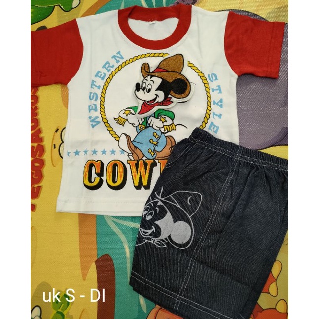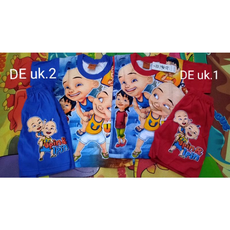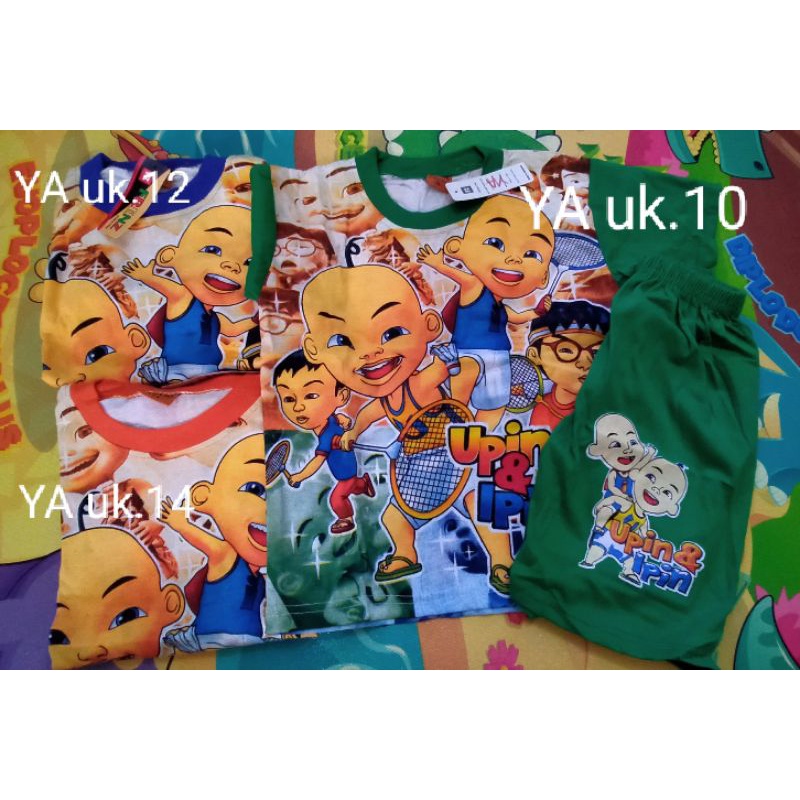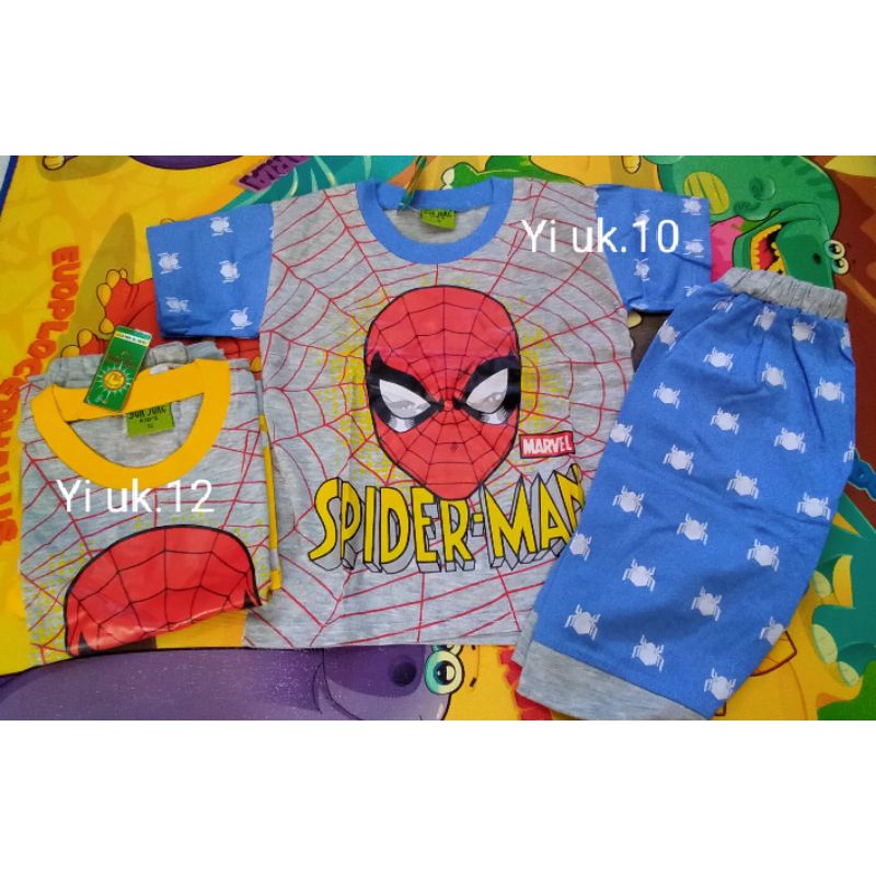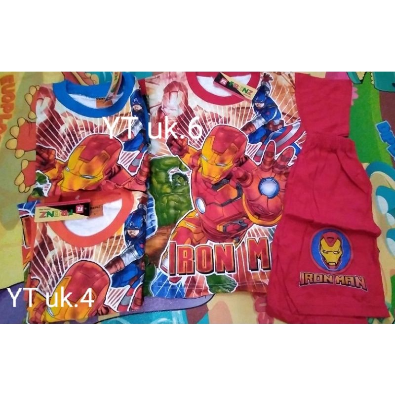 setelan upin ipin, iron man, ultraman, spidermamn, mickey