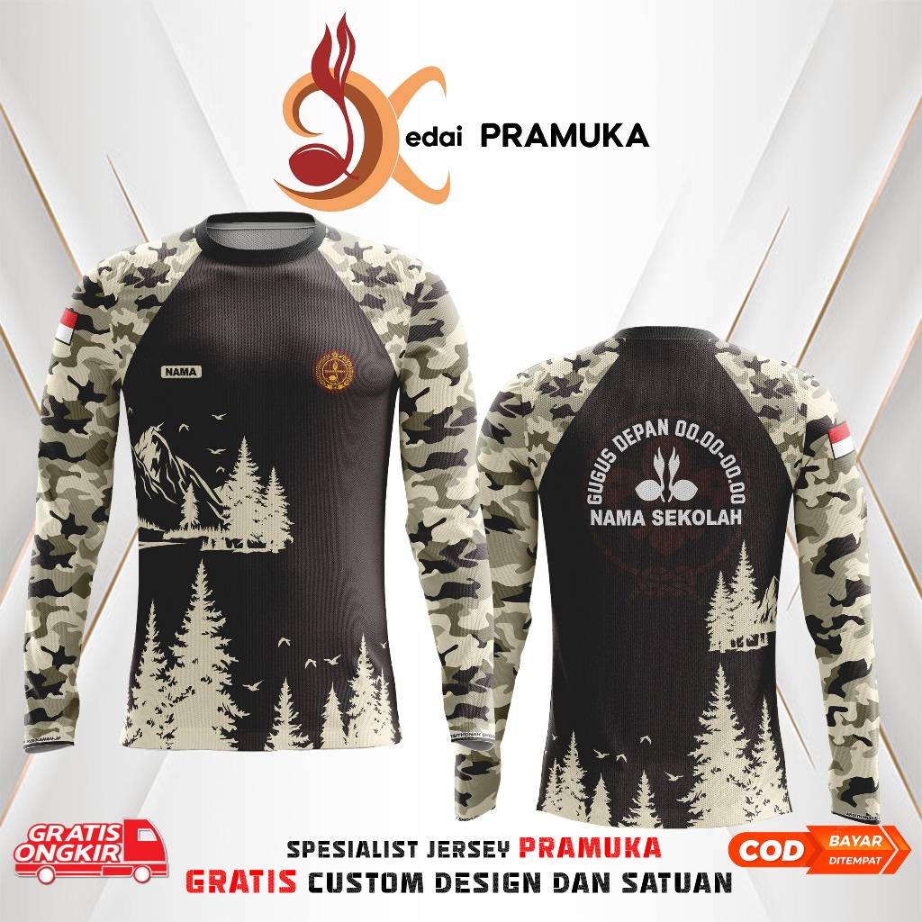 BAJU PRAMUKA FULL PRINTING OUTDOOR GRATIS DESAIN CUSTOM TERBARU