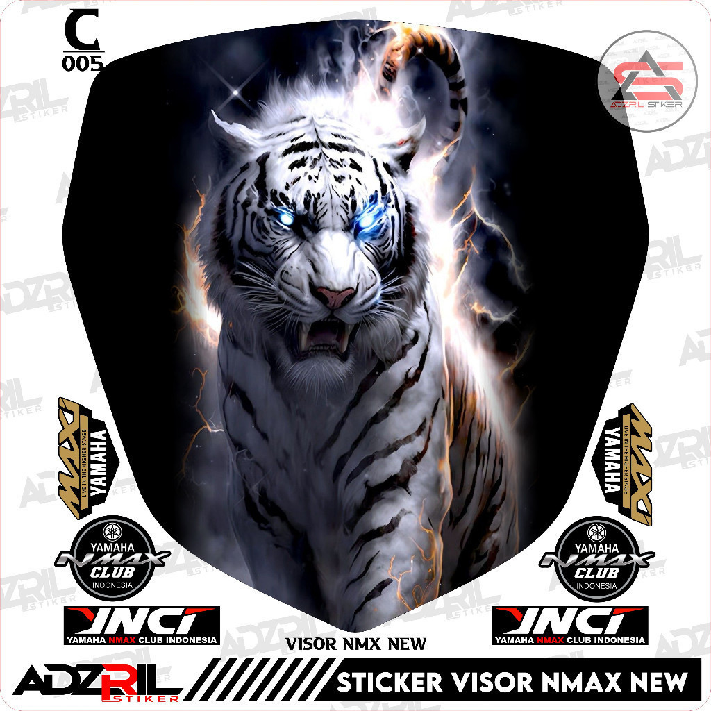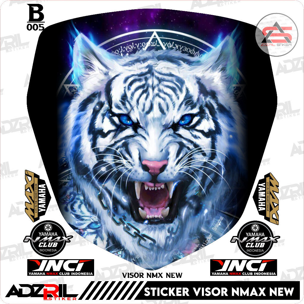 Stiker visor Winshield yamaha Nmax New 155 2020-2022 gambar Harimau keren (005) / stiker Winshield gambar harimau putih / stiker Winshield gambar macan putih / stiker Winshield gambar macan keren / stiker visor gamabar whiskey