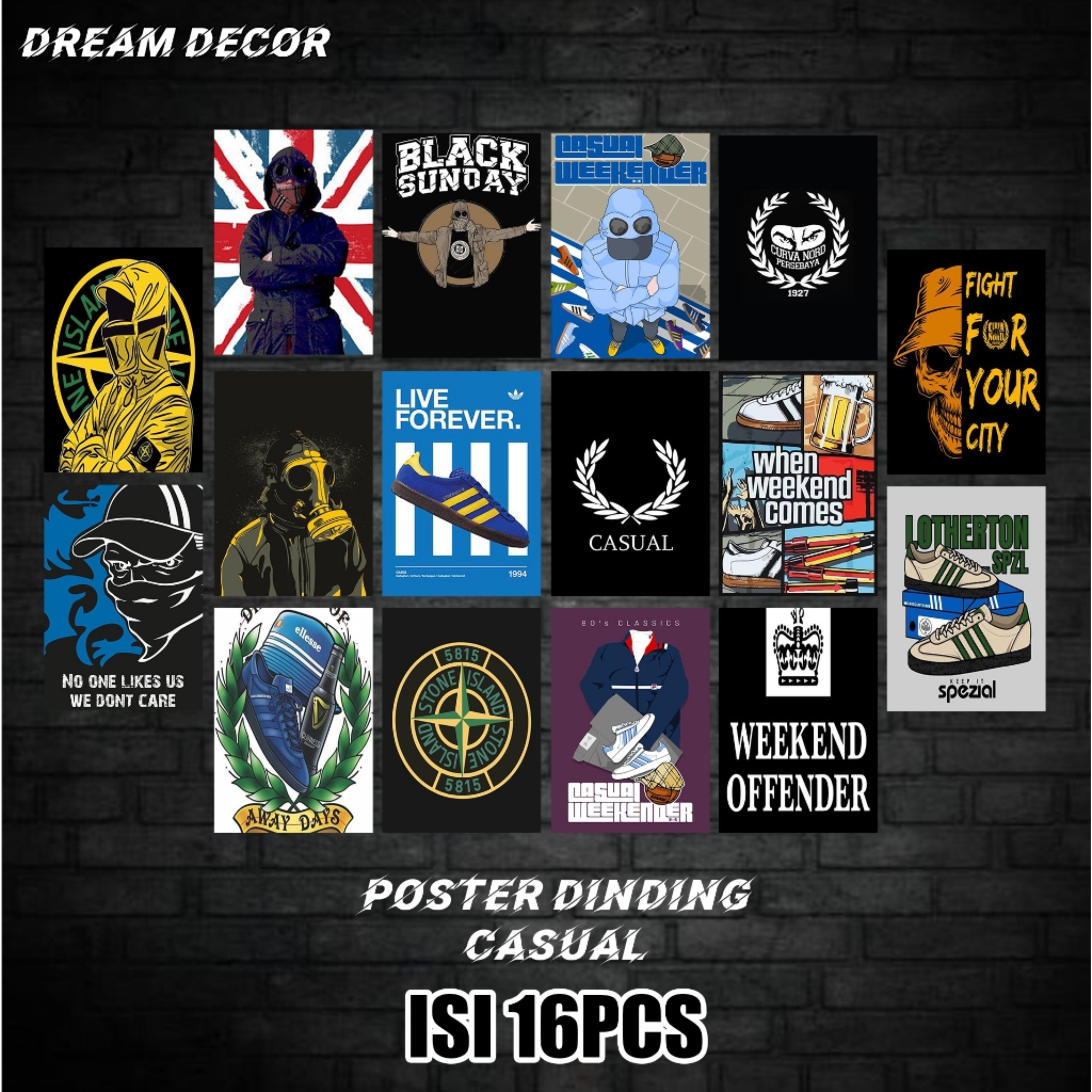 Poster Kamar Casual isi 16pcs [DD25] Ukuran A4 A5 A6 Bahan Glossy Dekorasi Kamar Cowok Poster Dinding Black Aesthetic