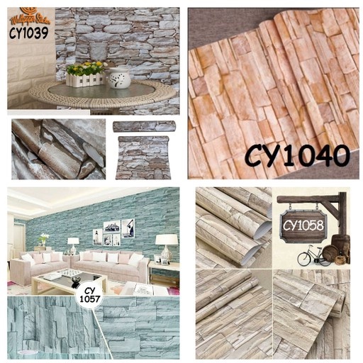 Wallpaper dinding 3d motif bata batu alam / Wallpaper dinding kamar tidur anak wallstiker 45cm x 8M