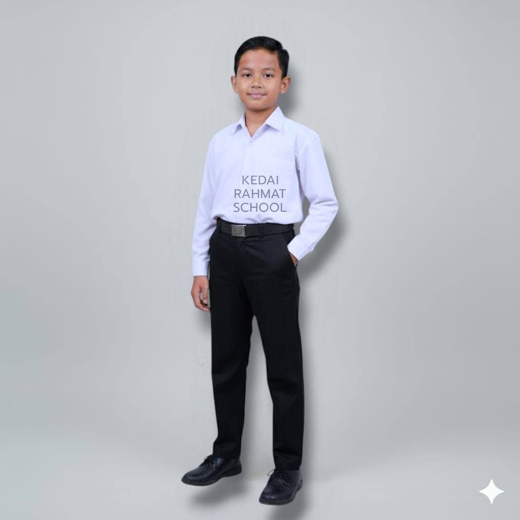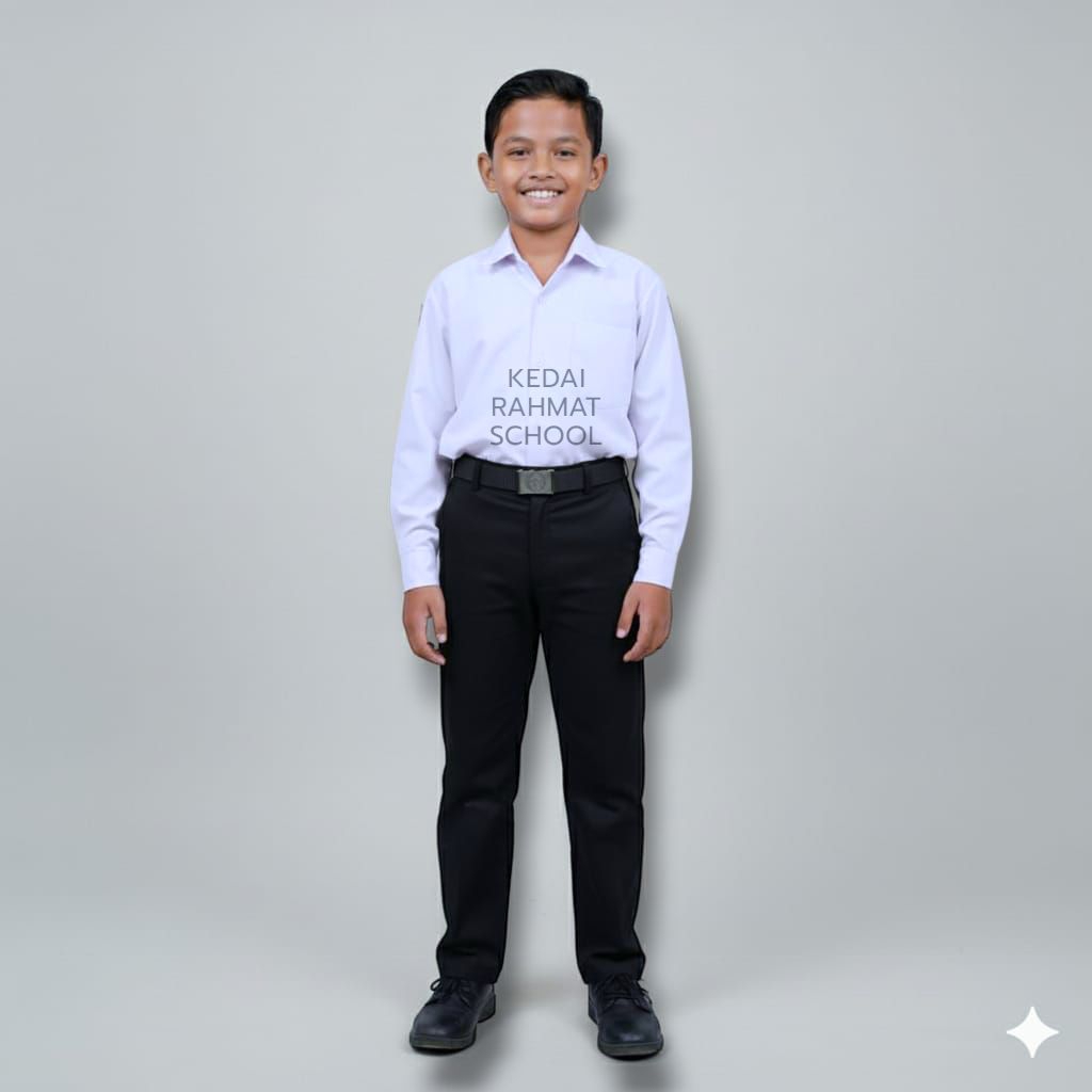 Setelan Baju Putih Polos Panjang Celana Hitam Seragam Sekolah SD MI TPA MDA TPQ Madrasah Ibtidaiyah Anak Laki Laki
