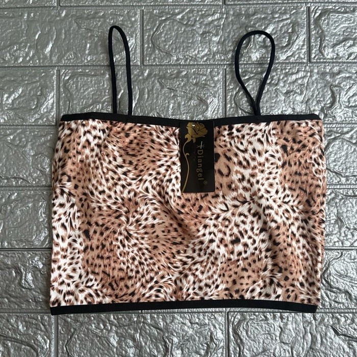 Crop Tanktop Bra Kemben Motif Leopard Macan Tutul Tank Top Import Ada Cup Bra Tipis ada Tali bahu
