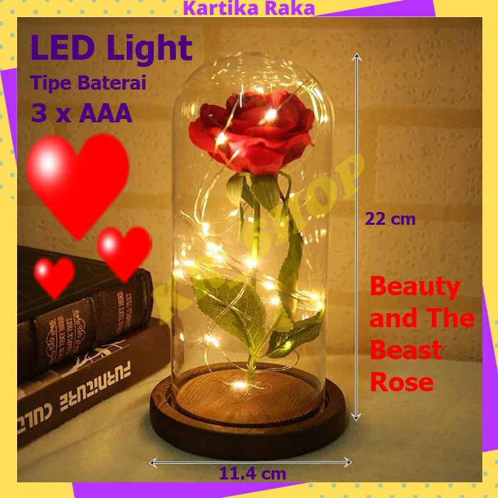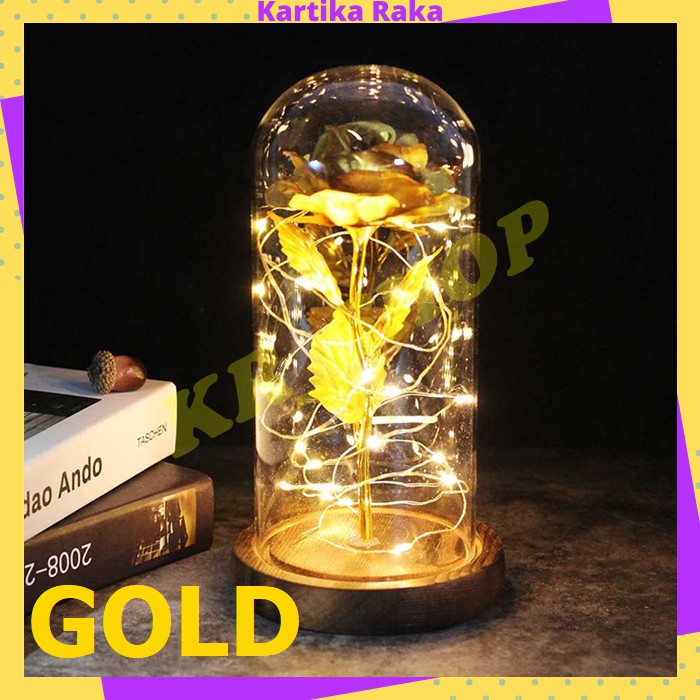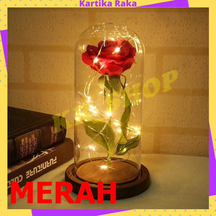 [COD]Lampu Tumblr tidur hias kamar Dekorasi Bunga Mawar dengan LED + Alas Kayu + Dome Transparan