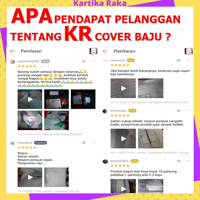KR Cover Baju Anti Debu Waterproof Pelindung Pakaian Gantung