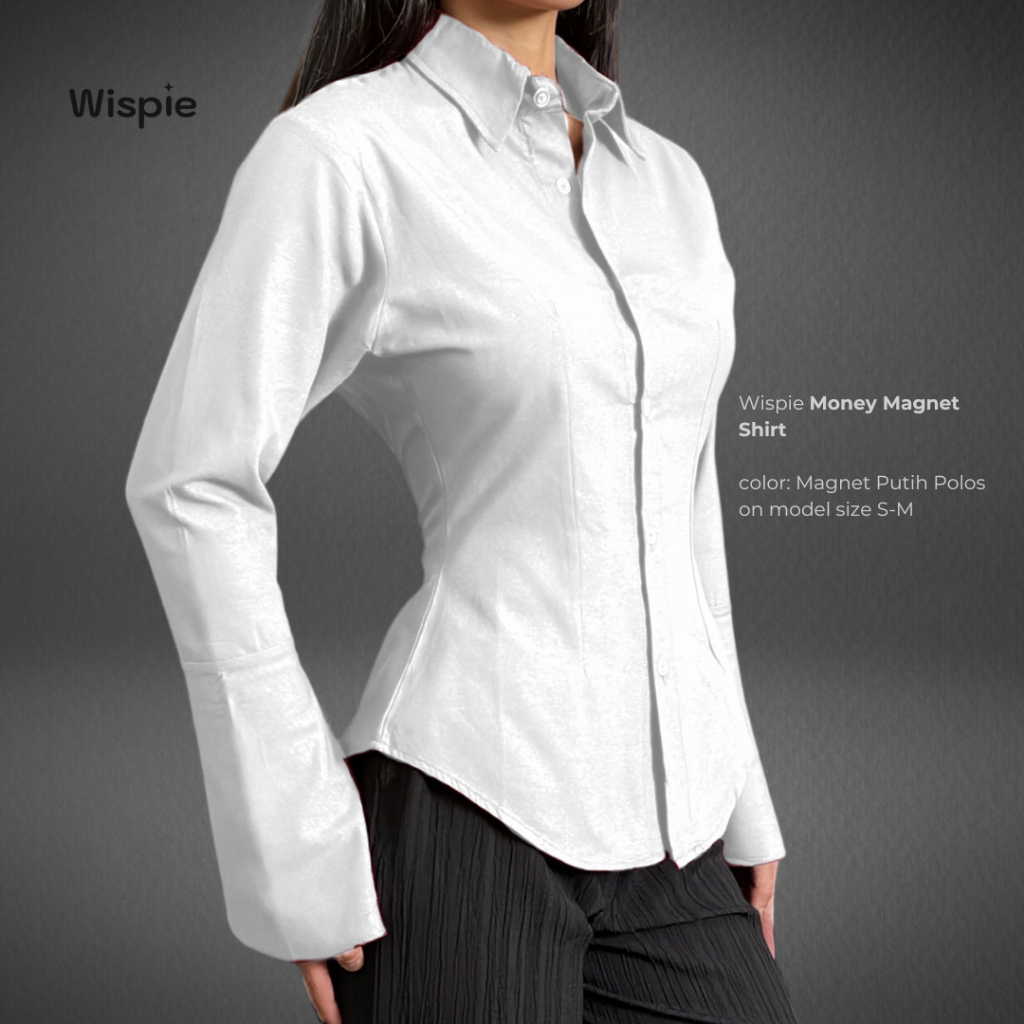 Wispie Money Magnet Fitted Shirt | Kemeja Kerja Wanita Press Body Pinstripe Salur Pink Biru Berkaret