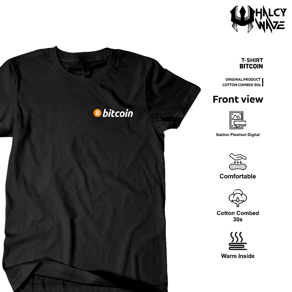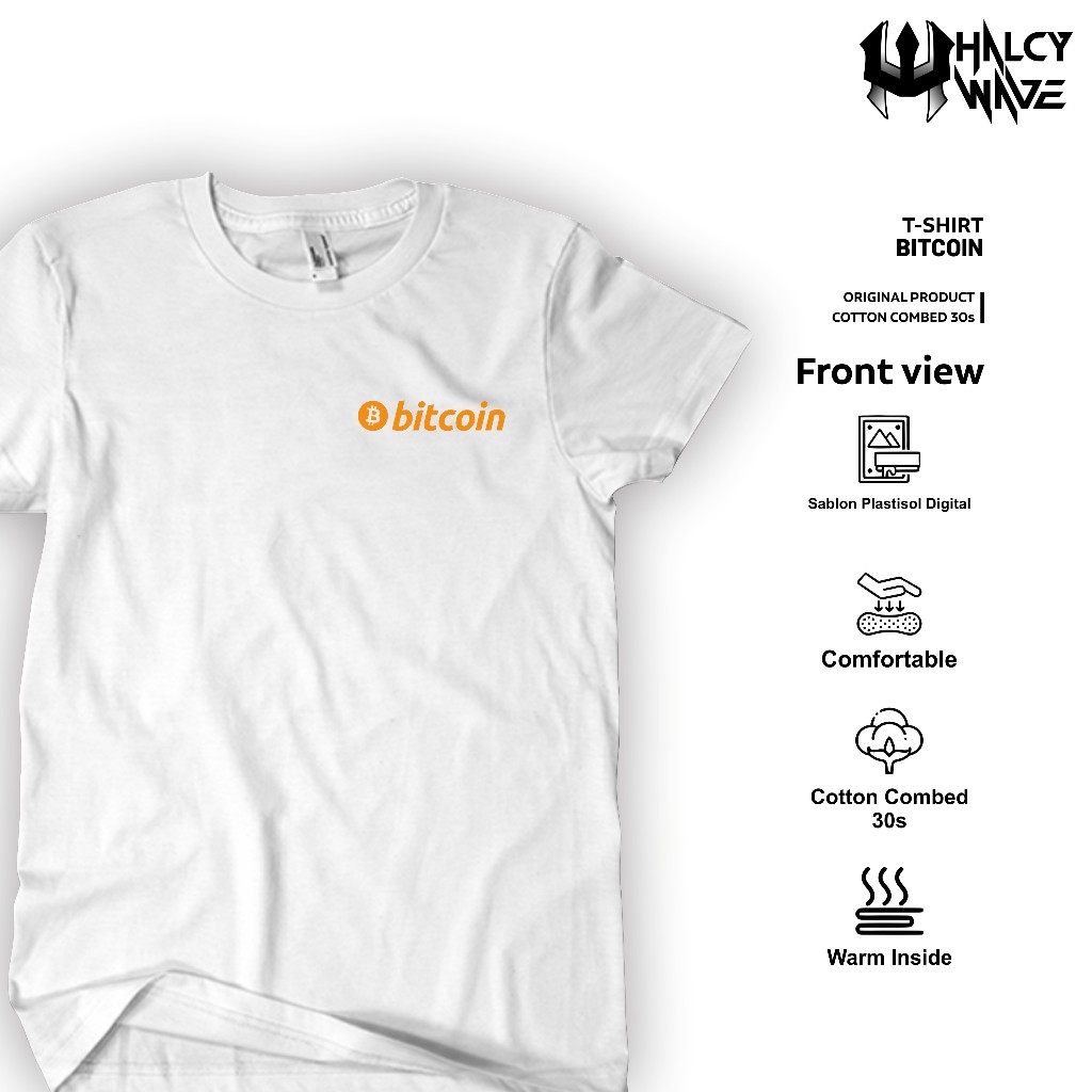 HlcyWve | Baju Kaos Trading Crypto Bitcoin BTC Motif Logo Kecil- Atasan Unisex 100% Cotton Combed