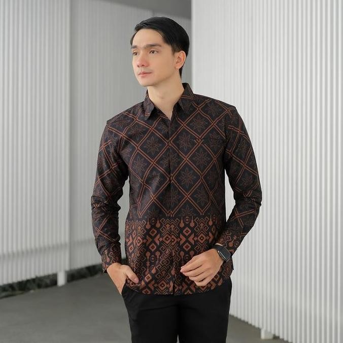 DGM KEMEJA BATIK PURING PREMIUM LENGAN PANJANG PRIA, KEMEJA BATIK PRIA PREMIUM TRIBAL COKLAT 2198