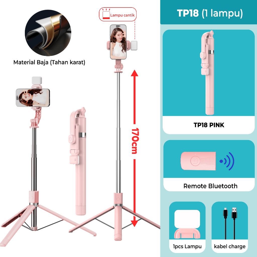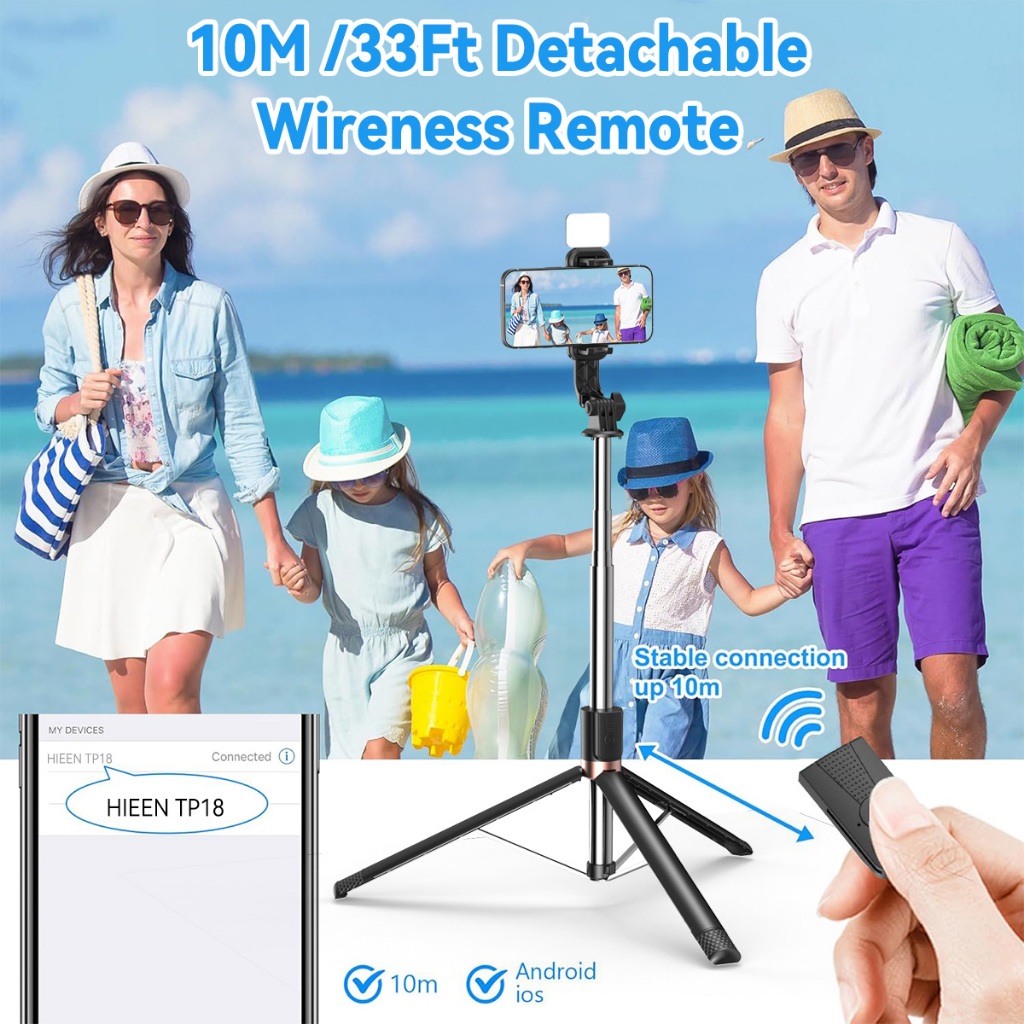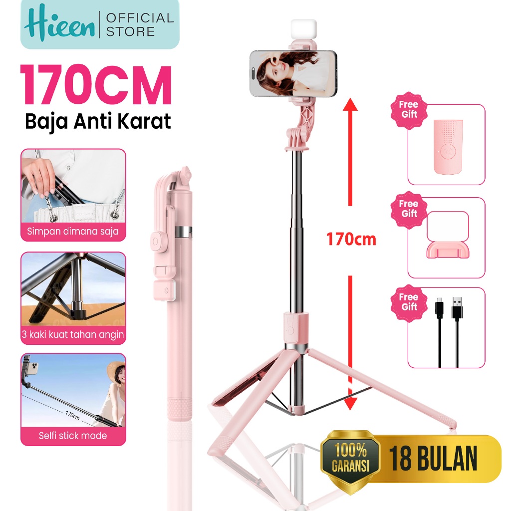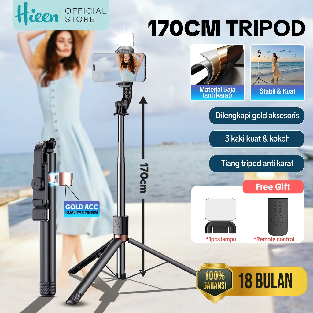 Hieen Tripod TP18 Remote Control Bluetooth 170cm Dengan Lampu Kecantikan 3 Kaki Kokoh Multifungsi