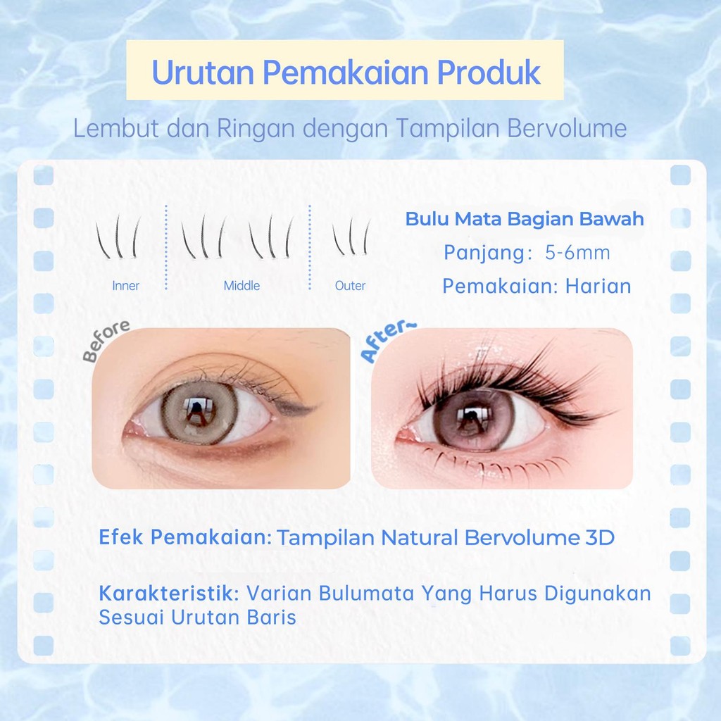 MILAI A45 Tanpa Lem Bulu Mata Palsu Bagian Bawah Serat Kapas Hitam Pekat 5-6mm Fleksibel Nyaman untuk Berkedip Korean Look UnderLash