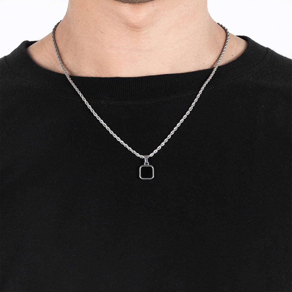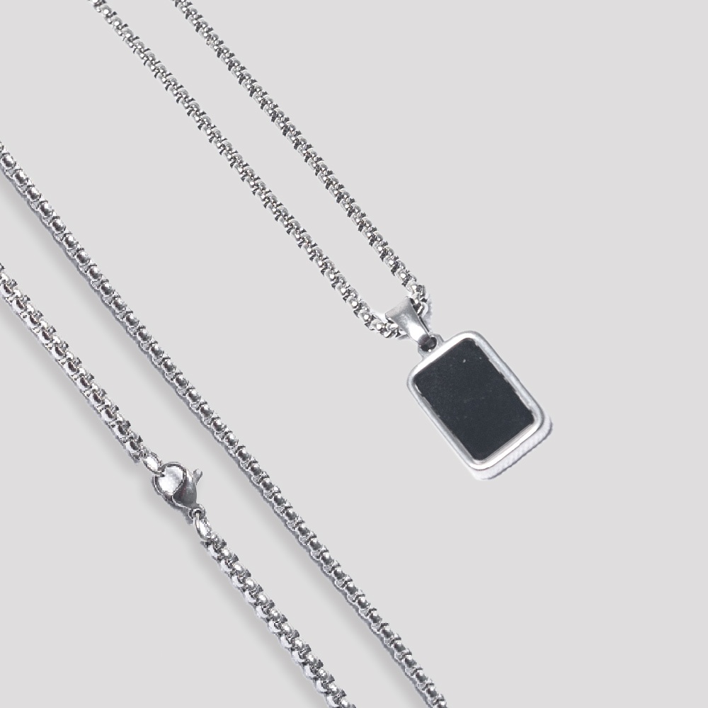 Ohio * Kalung Titanium Liontin Kotak Custom | Kalung Liontin Titanium Persegi Pria | Kalung Rantai Titanium Pria Wanita