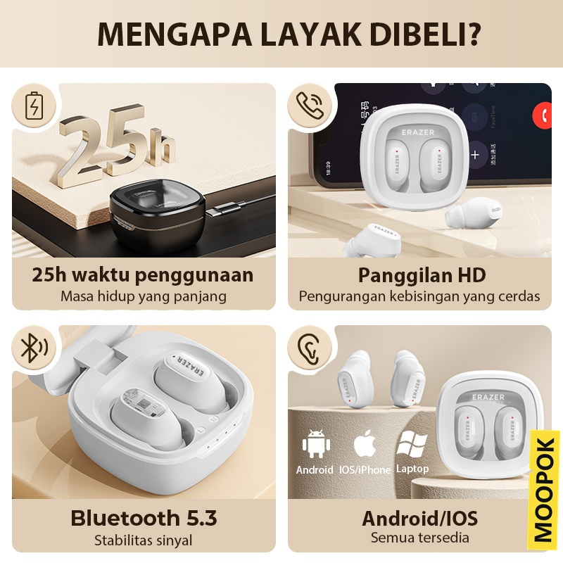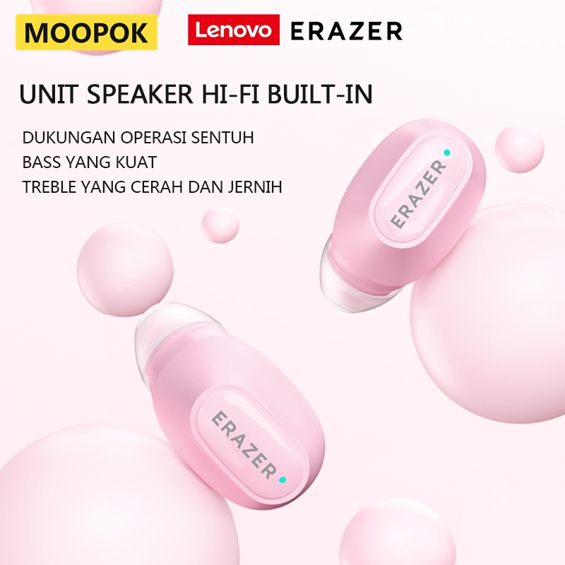 ERAZER Lenovo XT62 Mini Earbuds In-Ear Headset Bluetooth 5.3 TWS Earphone lotso HIFI Stereo with Mikropon