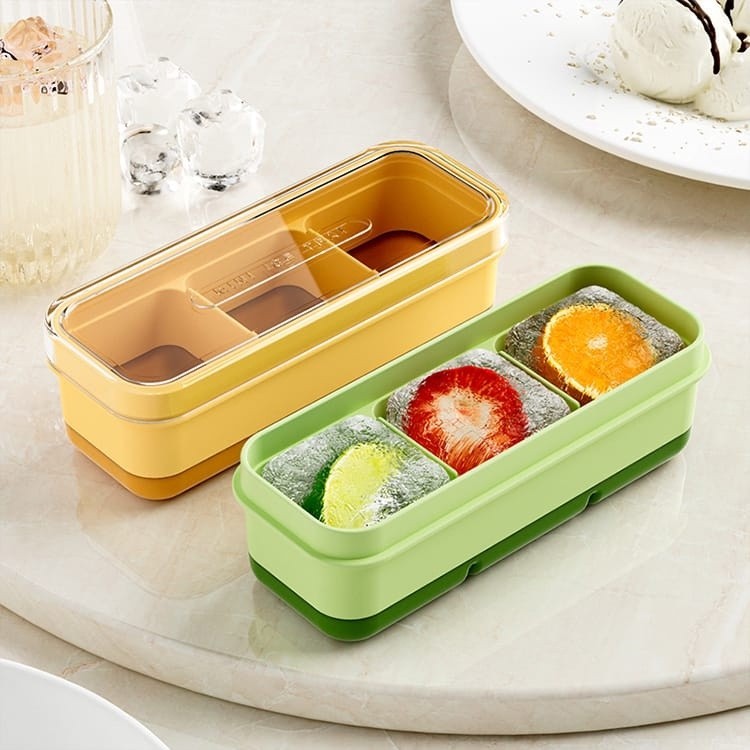Cetakan Es Batu Bentuk Kotak 3 Lubang Praktis Mudah Dilepas